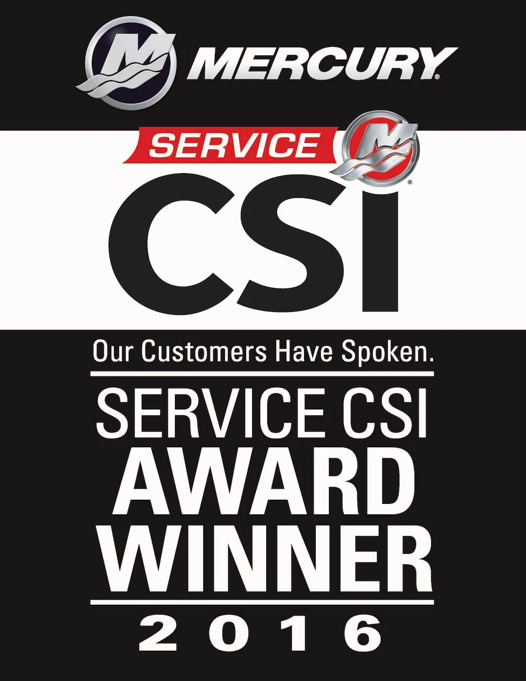 The Mercury CSI Award is a customer-based award, achieved by excellence in customer support & service. We here at Boat City USA want to thank our customers for many years of support. We thank you for your feedback.
