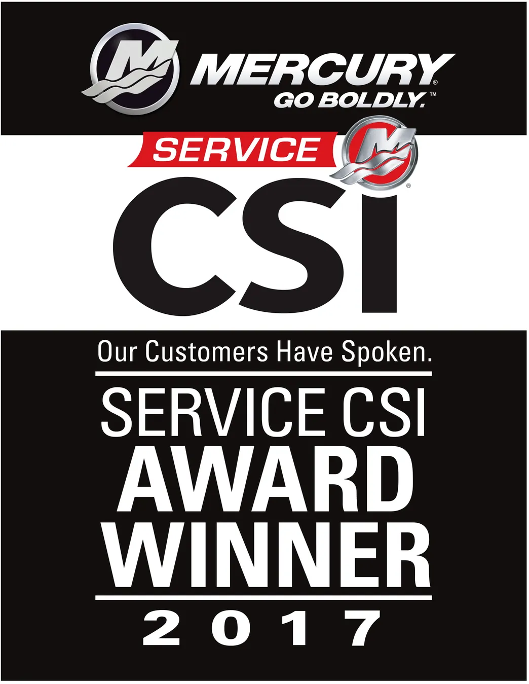 We are proud to announce that Mercury Marine has recognized our service team here at Boat City USA in Hammond as a “Premier” dealer with the prestigious “CSI” Award for 2019. We are proud to say that we have earned the CSI award on 9 previous occasions.