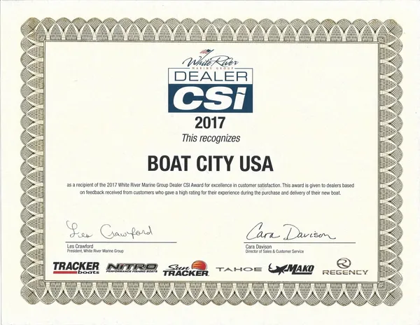 Boat City USA is proud to receive the White River Marine CSI Award for 2017. This recognition is