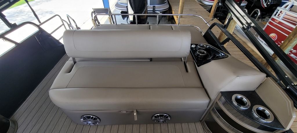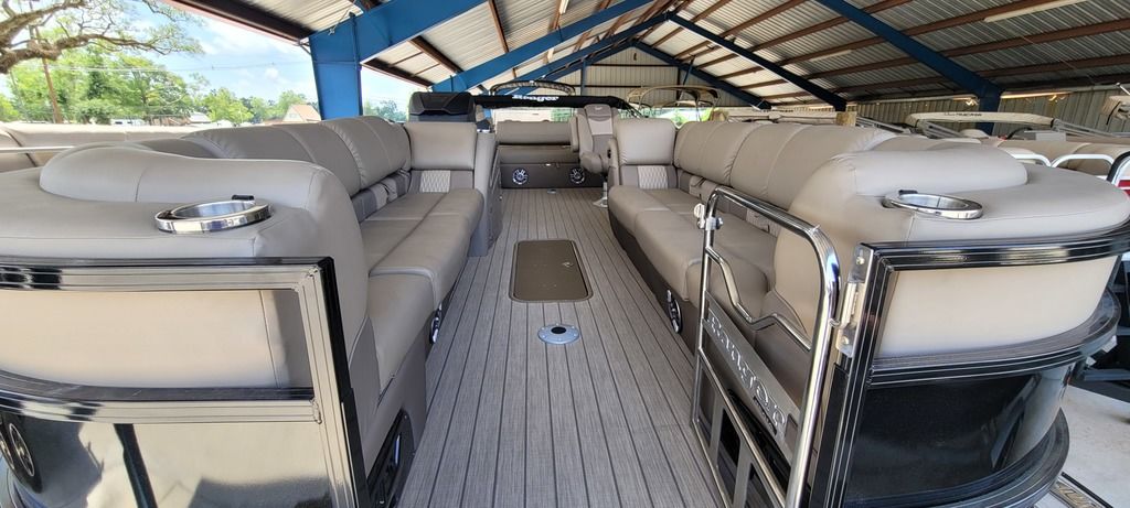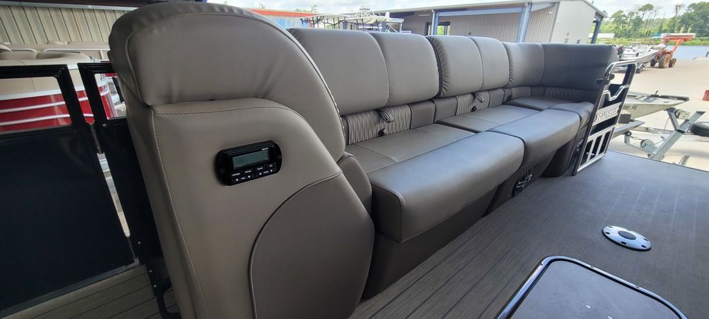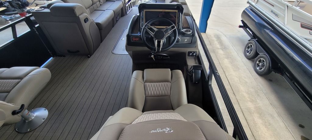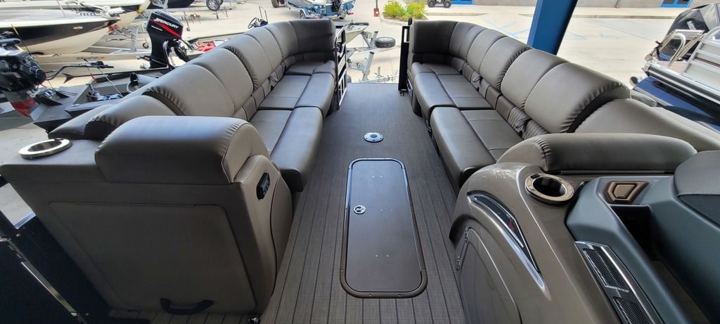 A flagship pontoon should leave nothing wanted, and everything given — in spades. The Ranger® Luxury Series 2500 LS offers an unprecedented experience with effortless performance and commanding style. Every feature is created to redefine how rich and rewarding a day on the lake can be. From overstuffed pillow-top seating and ultra-premium upholstery to the mood-setting color-changing speaker housings and drink holders, the 2500 LS presents refinement like none other. A touchscreen multifunction display at the helm lets you control every aspect of your boat's functionality while a reverse-activated rear-facing camera shows you what's behind. Extensive storage is found under every seat and seatback with Ranger's DoubleUP™ lounges while a pair of lockable boxes provide peace of mind. The trio of powder coated pontoon logs work in tandem with the PowerPod™ motor extension to deliver an exhilarating escape on demand. Rattle-free, high-gloss fences with stainless steel accents display regal styling that's worthy of the Ranger name. Experience Supreme Luxury and Masterful Design in the Ranger 2500 LS.