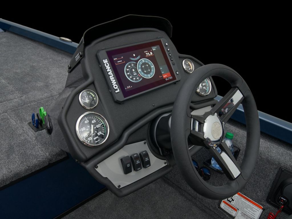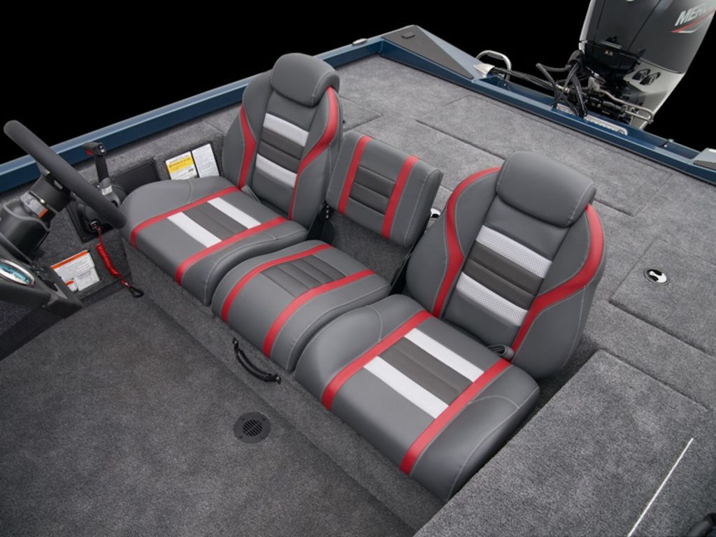 - Custom fitted marine upholstery- driver/passenger bucket seating w/ center fold down & two matching fishing seats