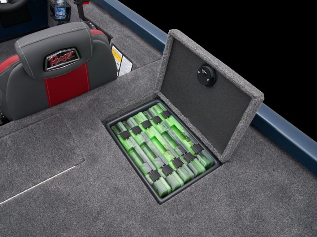 Up front, three-across front seating offers room for spider-rigging or shooting docks while an 8-foot, 6-inch rod box safely holds your longer sticks, and the wider design of the bow means you won't be stepping on your rods all day. An in-deck bow tackle storage box keeps gear close at hand, and a divided, timed, and aerated livewell is just underfoot. The rear deck features two more tackle storages and another livewell along with plenty of room to fish. Underneath the bench seating is even more storage while the cantilevered fiberglass console offers a surprising amount of legroom. Rounding out this capable package is a custom-built Ranger Trail® trailer that’s made specifically for this hull with premium wheels and a dose of Road Armor Equipped® coating for years of protection and peace of mind. Everywhere you look, the RT178C boasts Unmatched Value And Versatility.