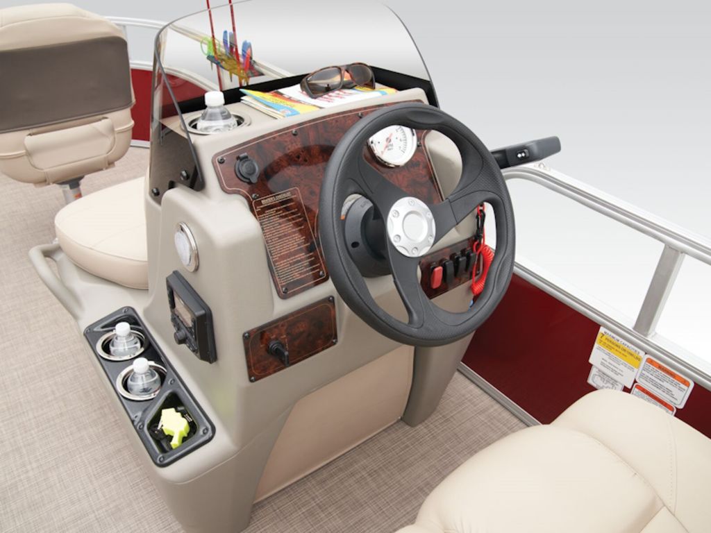 - Driver console w/vertical rod holder, integrated storage, drink holders & side-mounted controls