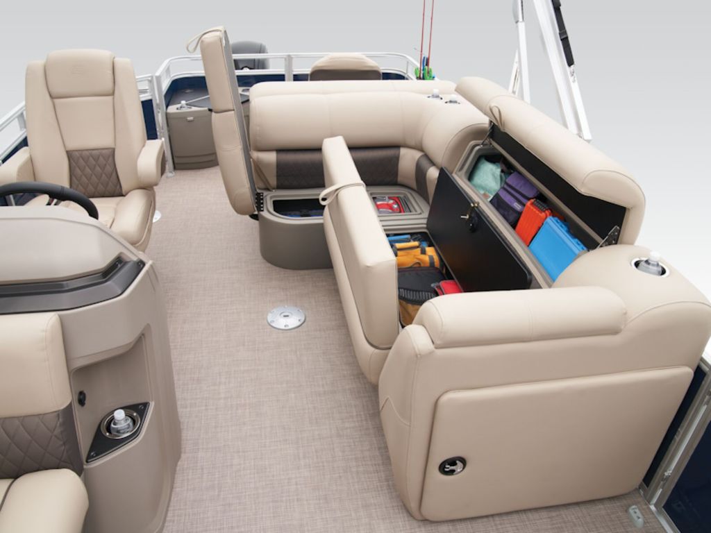- Aft L-lounge couches w/STOW MORE™ & underseat, lockable storage
