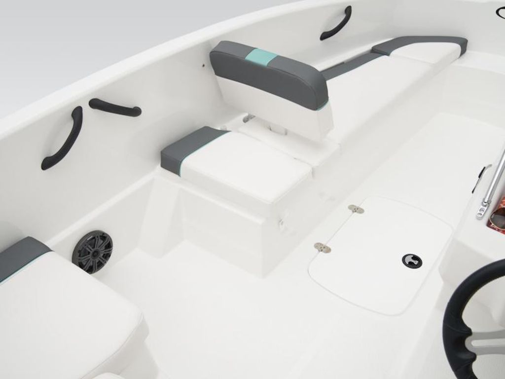 - Hinged mid-cushion for aft sunpad & fold-down seatback allows easy entry w/out stepping on upholstery