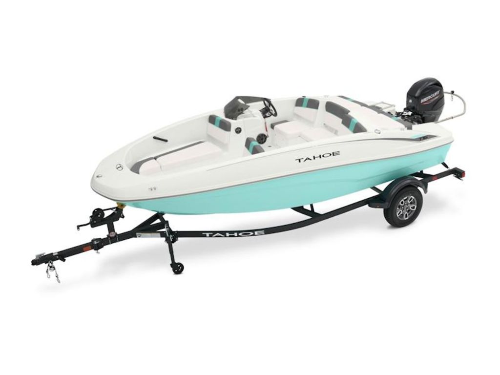 The 2026 TAHOE® T16 comes standard with a 60hp Mercury® ELPT FourStroke outboard motor and has a recommended maximum 75hp rating. This model is packaged with a trailer.