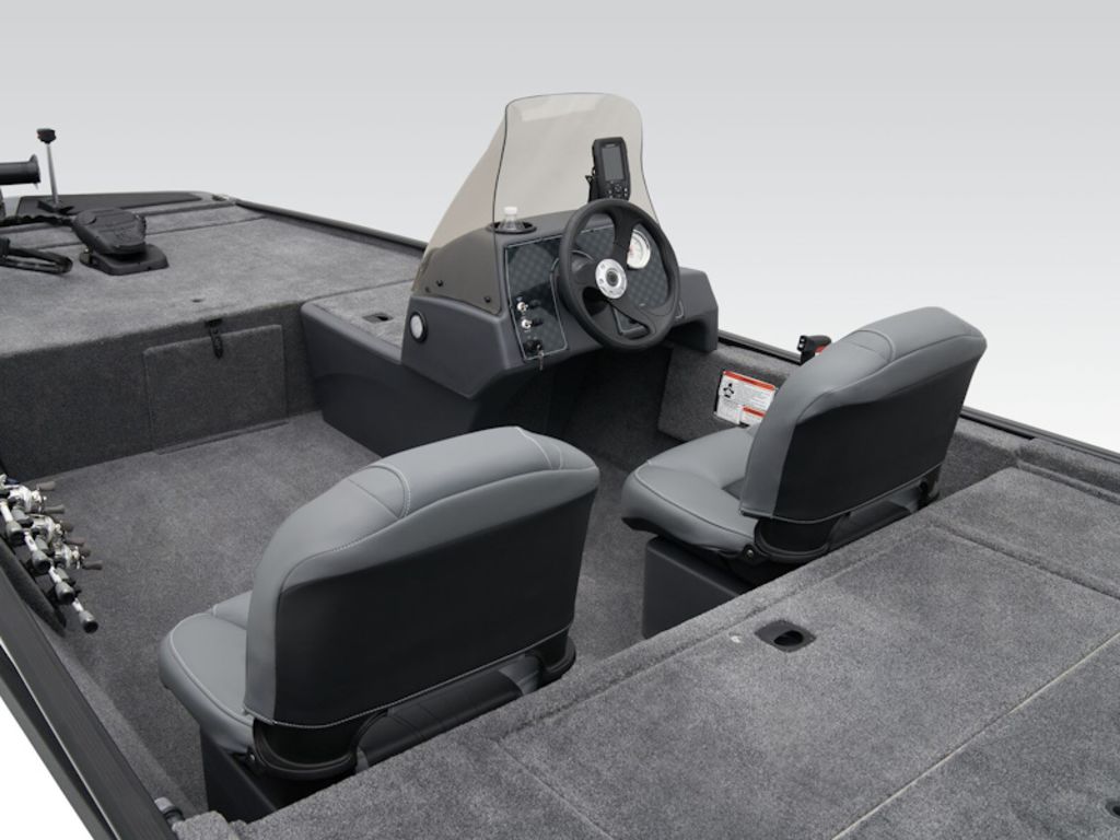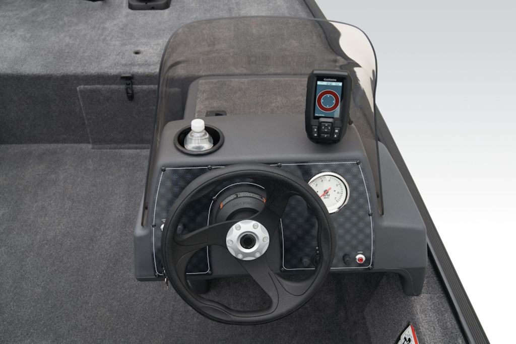 - 1-piece rotomolded console w/tinted windscreen, integrated livewell, drink holder & 12V outlet