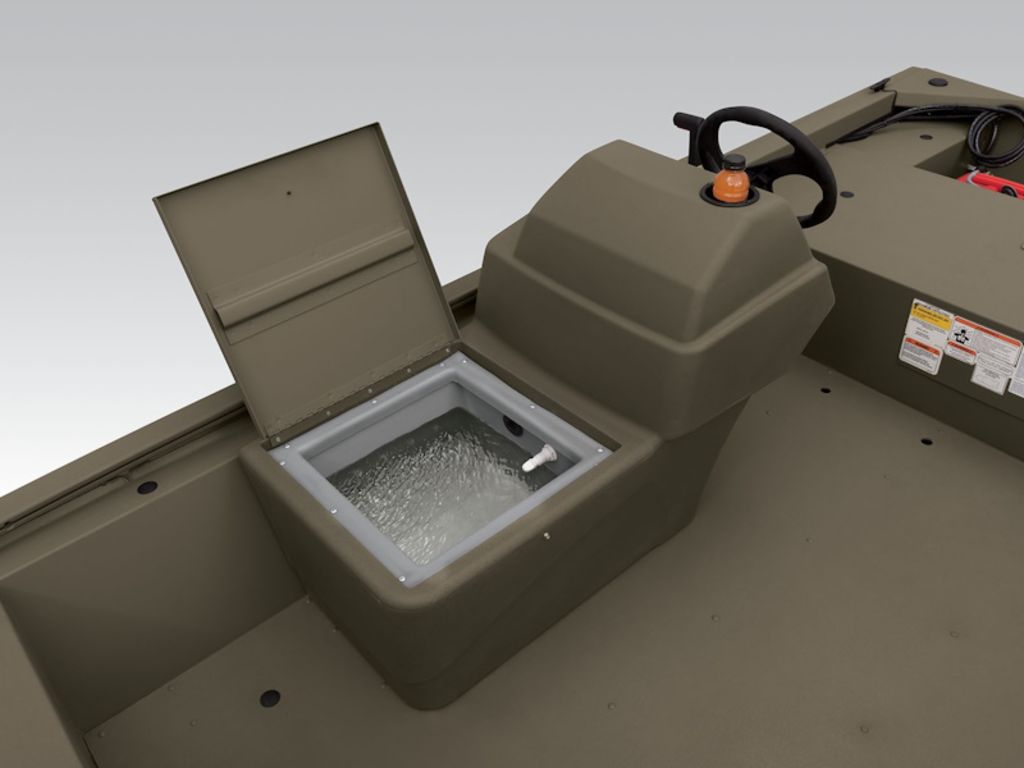 - 9-gal. (34.07 L) rotomolded & aerated livewell w/rounded corners (integrated into front of the molded console)