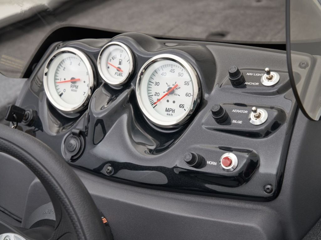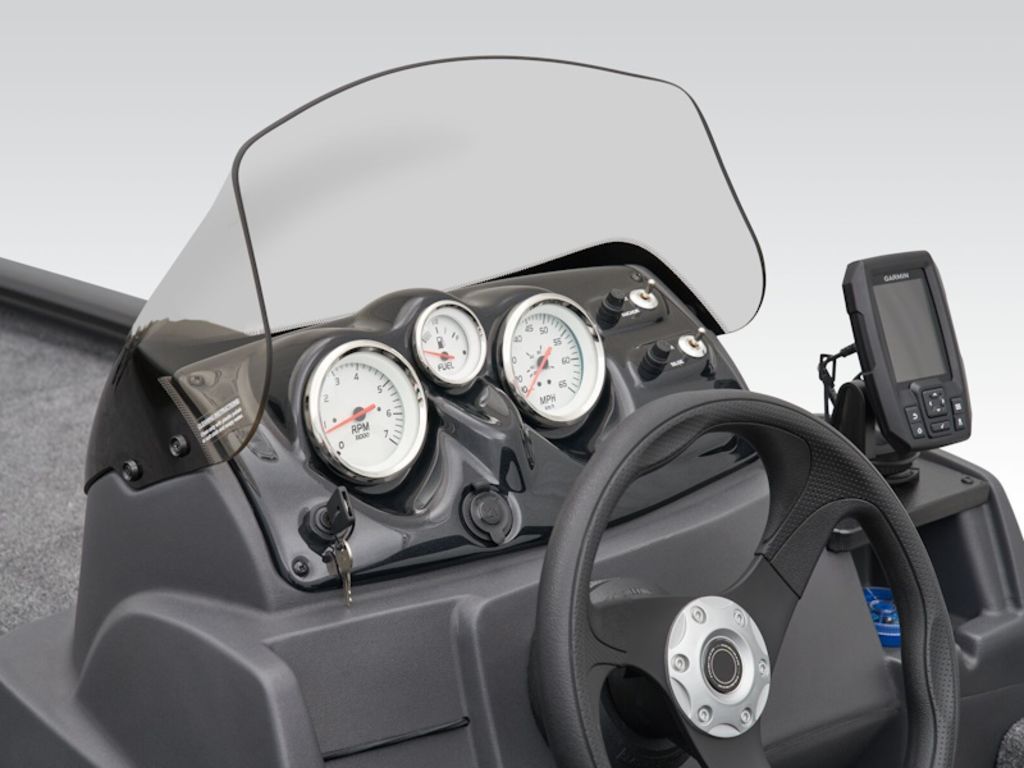 - Sleek, 1-piece rotomolded console w/tinted windscreen, open storage compartment, built-in drink holder & 12V outlet