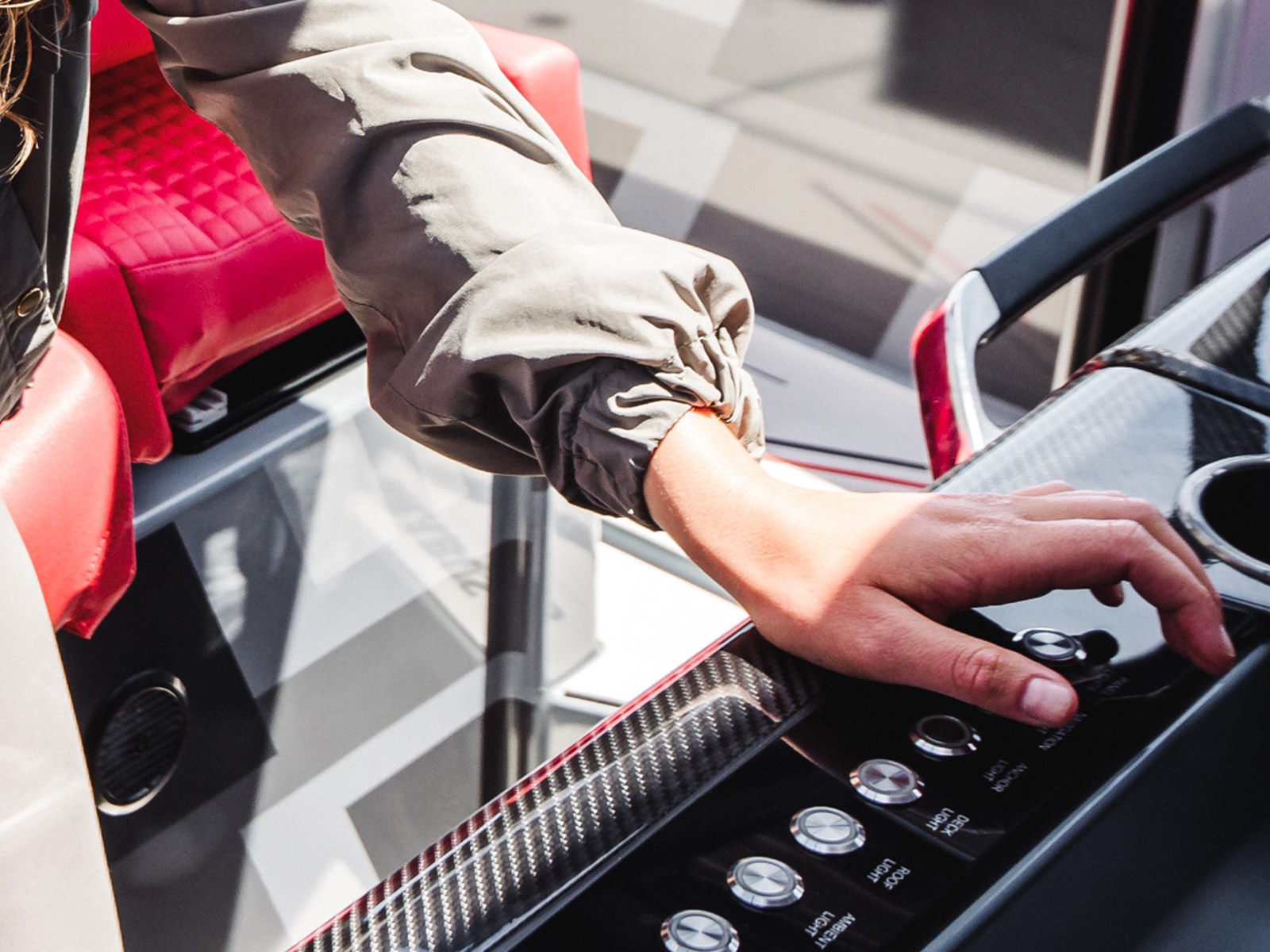 Carbone fiber - Visible carbon-fiber parts complete the ultra-cool looks of the dashboard and seat trims and further emphasizes the clean and high tech look of the boat. All carbon-fiber parts are made in-house and supplied directly to the boat factory from the BRABUS headquarters in Germany.