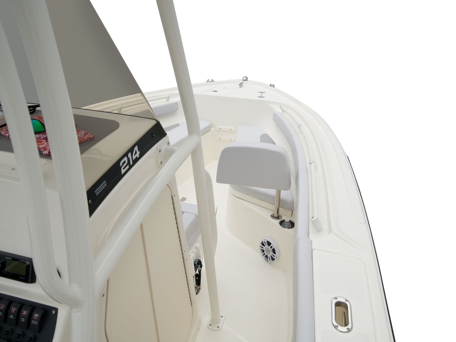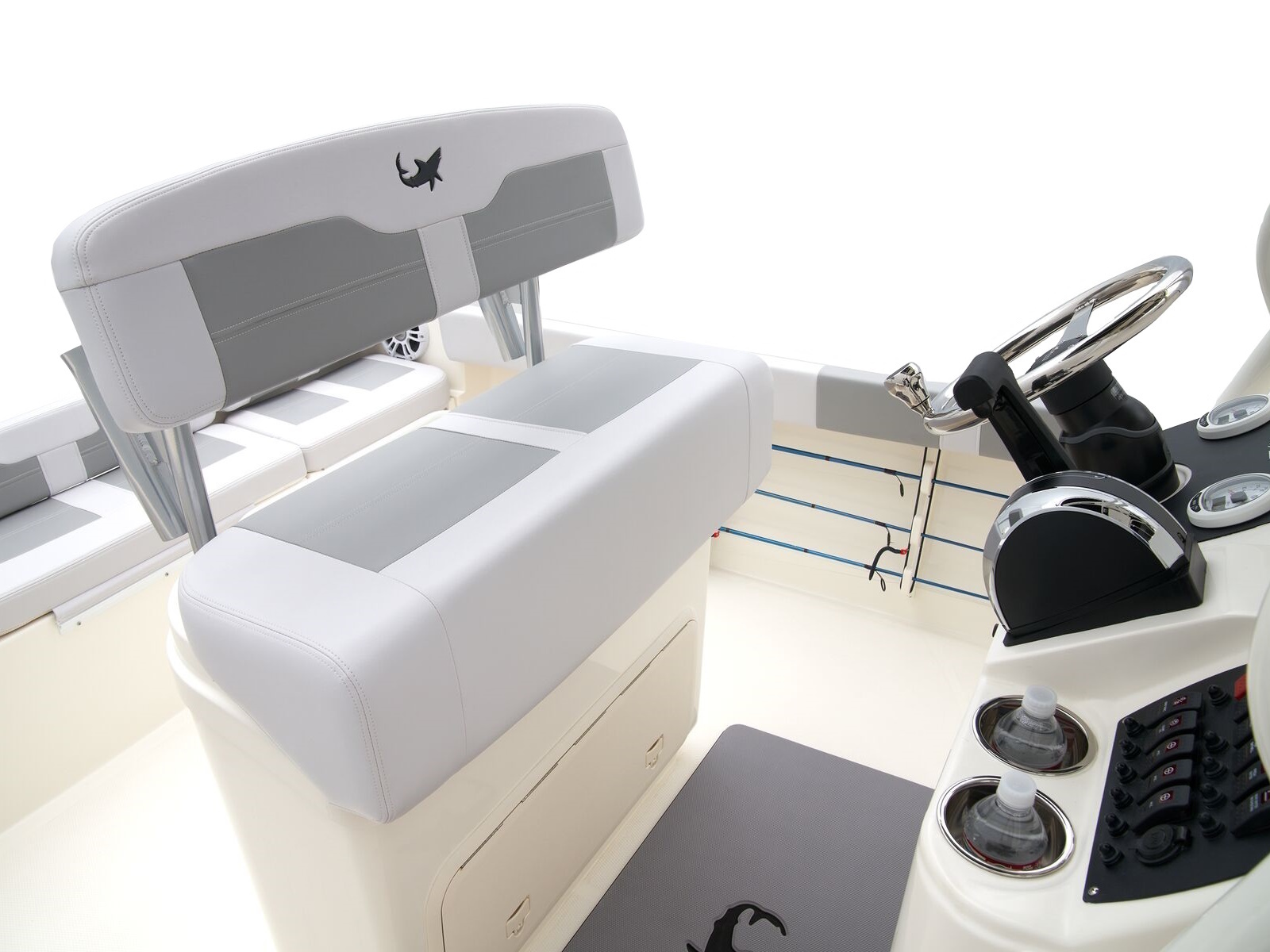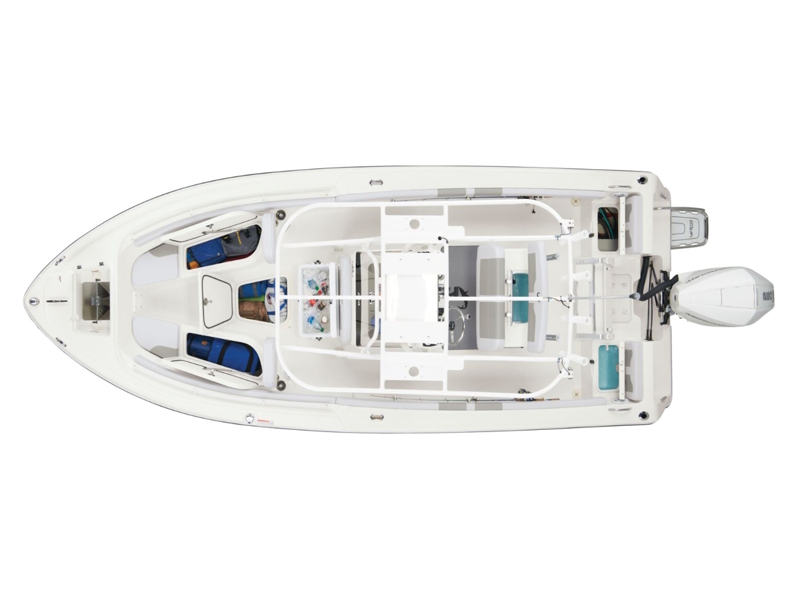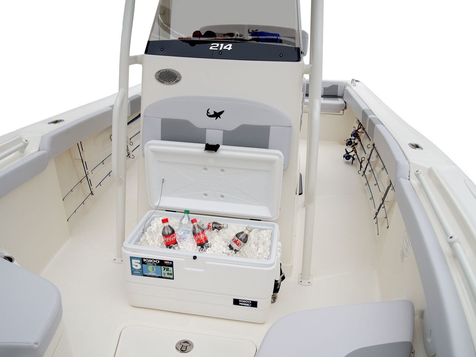 - Port & starboard forward seats w/108-qt. (102.21 L) insulated storage below w/gravity overboard drainage