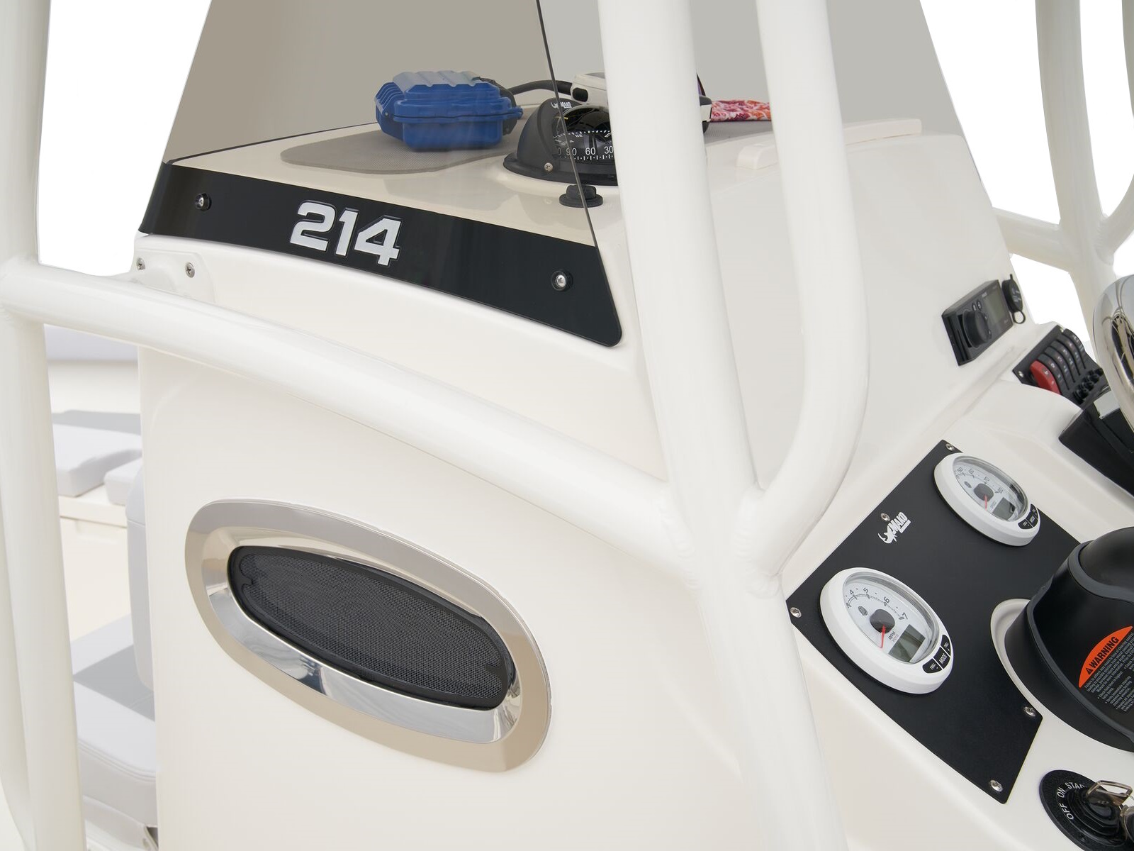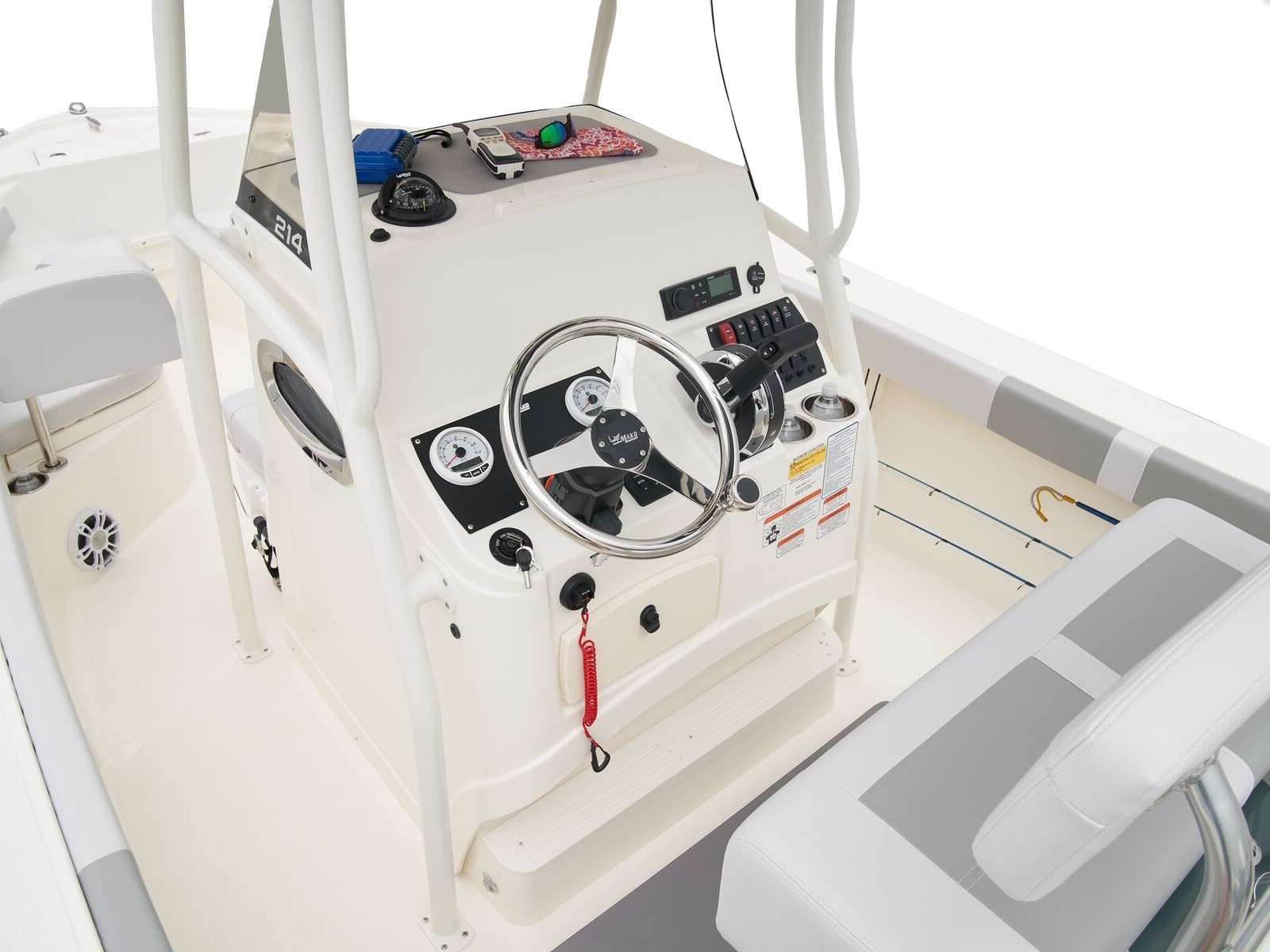 - 2-tone high-density marine-grade vinyl upholstery w/stain-resistant coating & composite substrates on seats