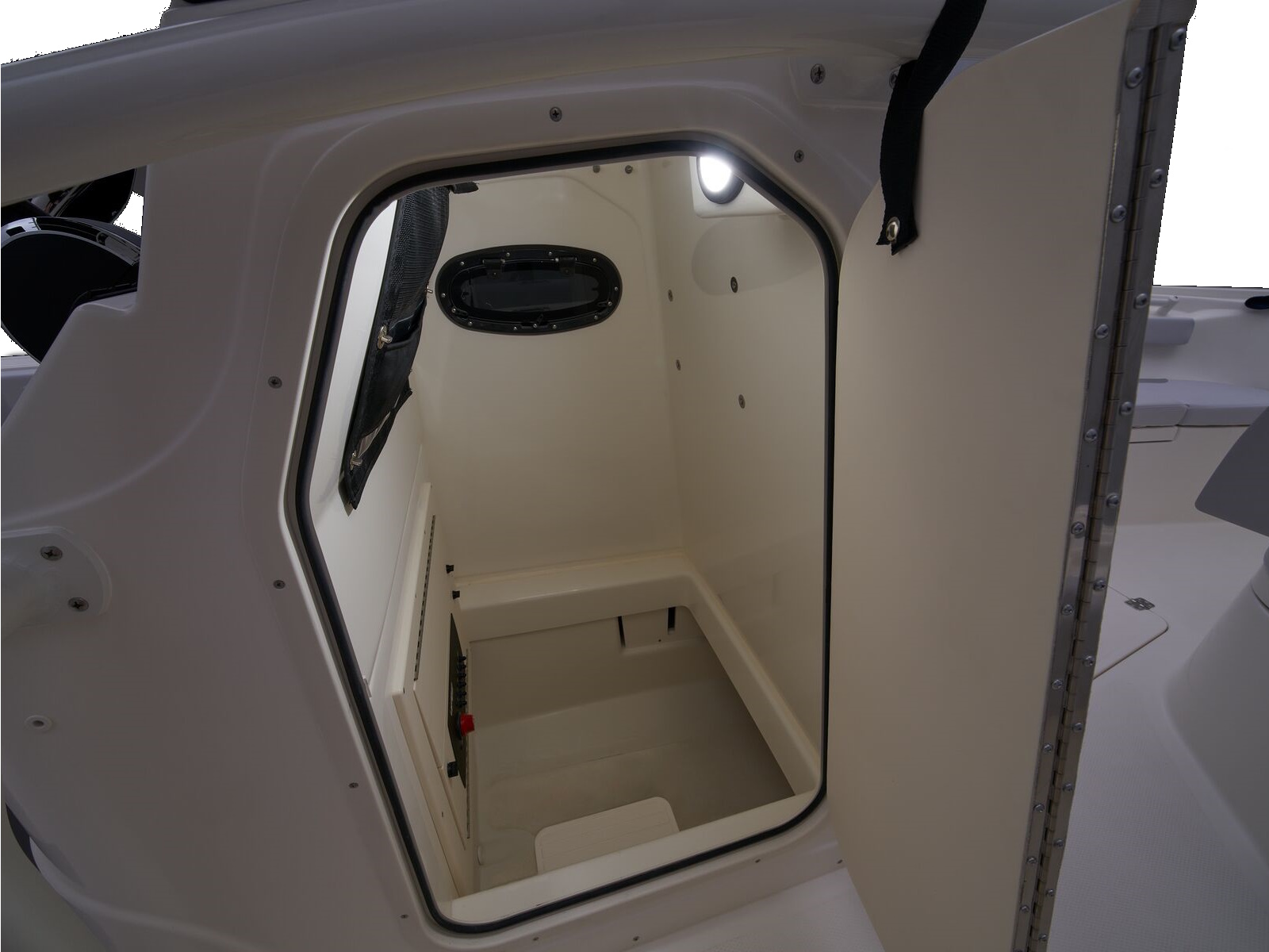 - Head enclosure/storage space w/stainless steel latch