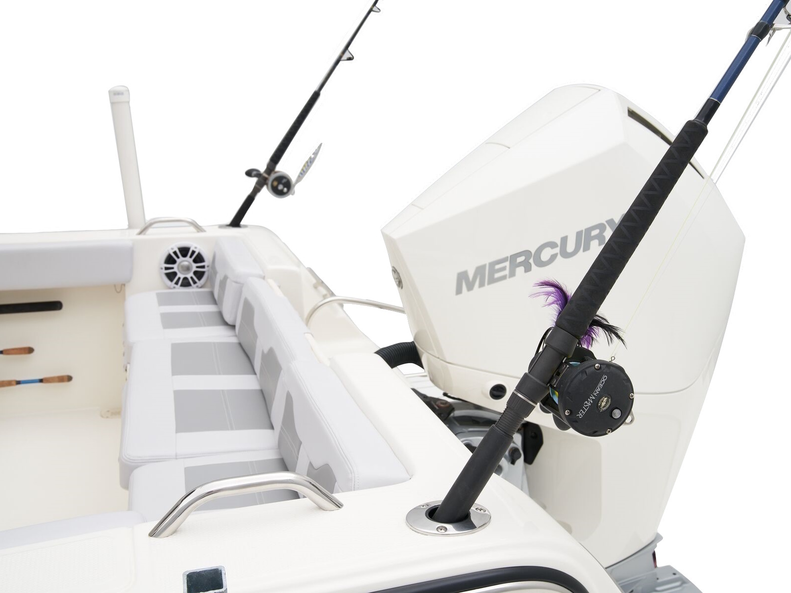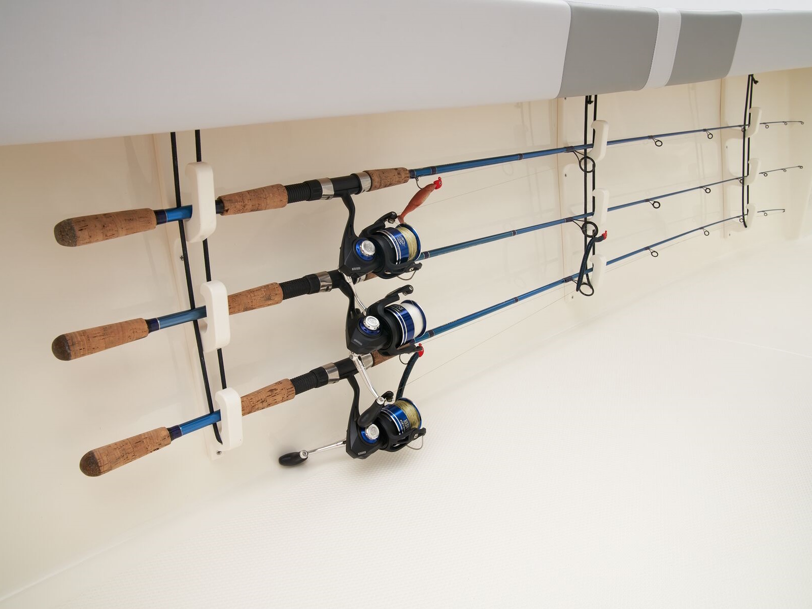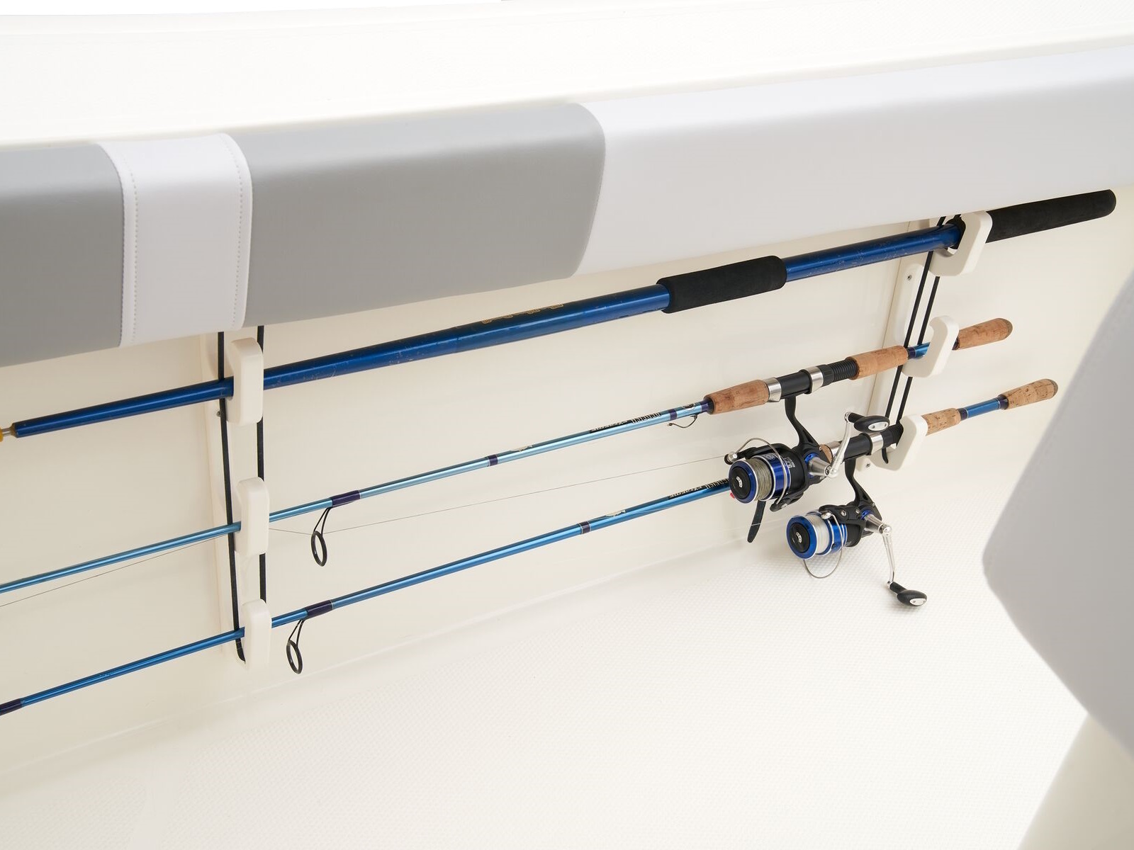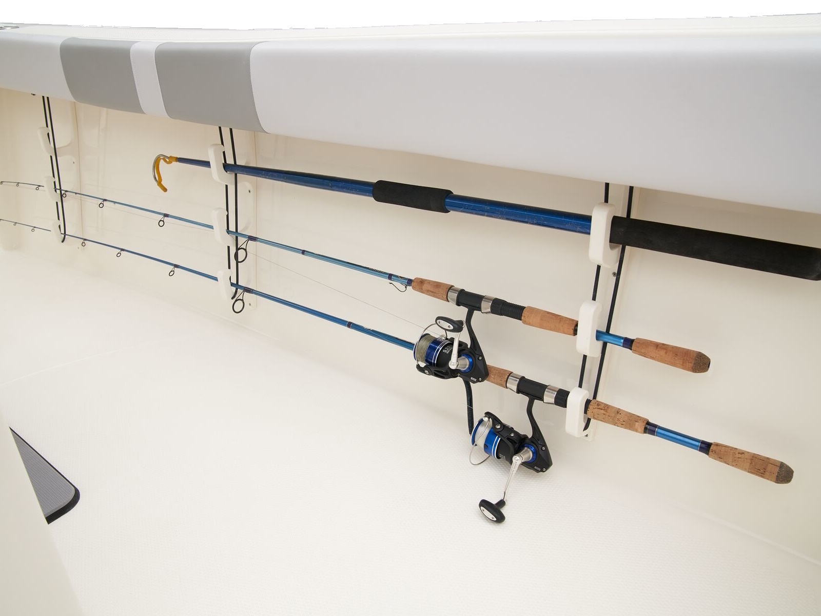 - Port & starboard under-gunnel rod racks for 6 rods up to 7' (2.13 m) long