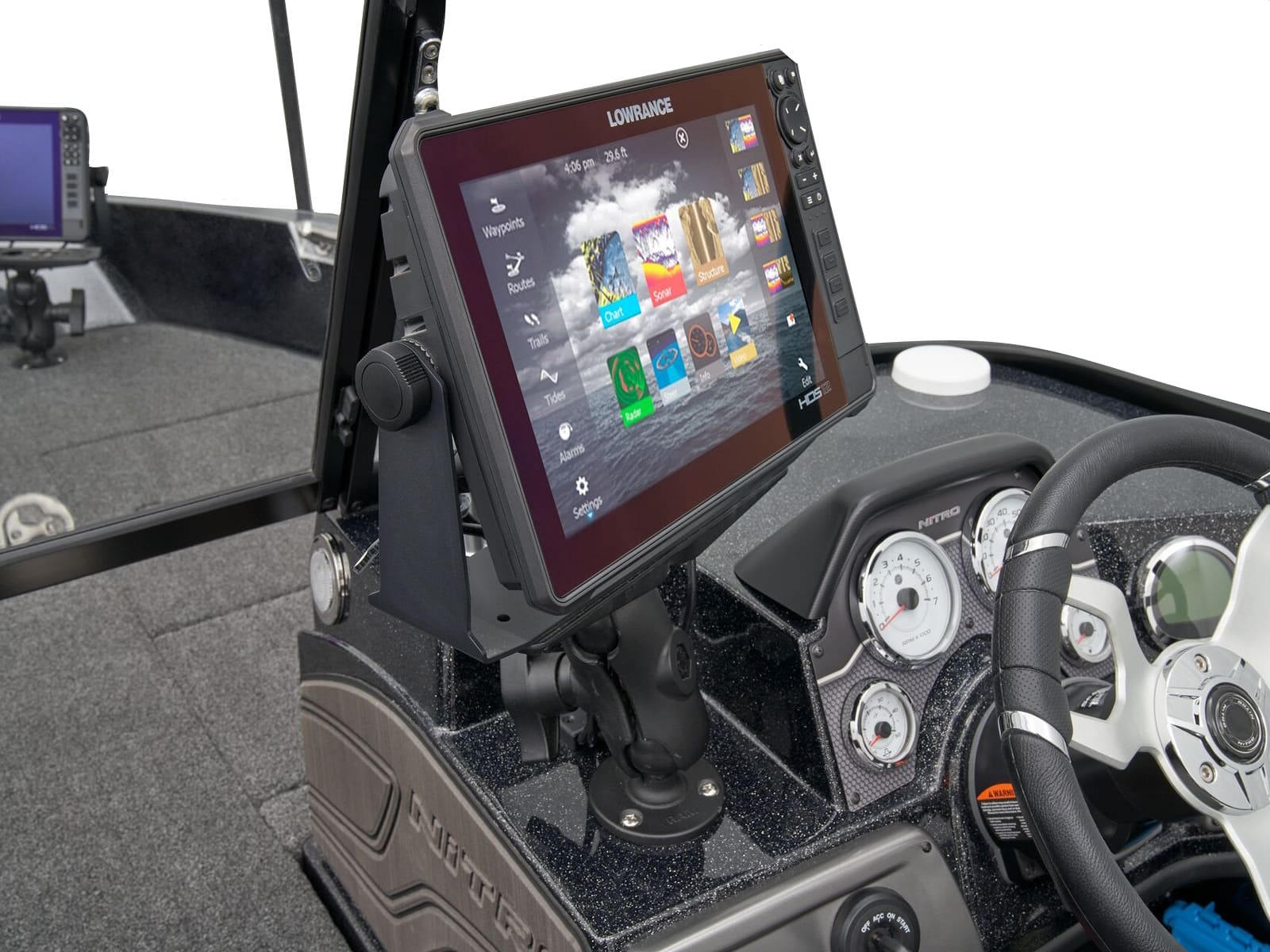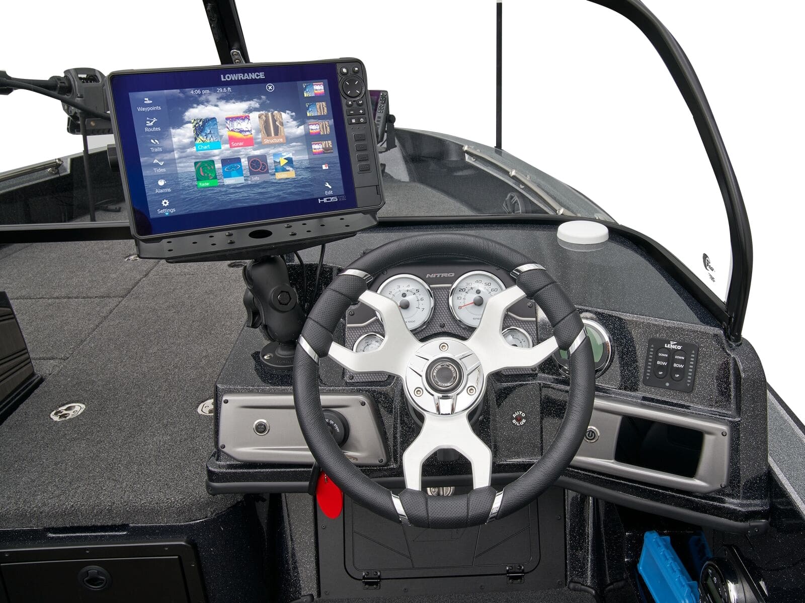 - 5" (12.7 cm) NITRO® Z-TOUCH™ digital touchscreen control w/1-touch boat controls including First Fish & Nite modes; master power; trim; lighting; bilge; livewells & more