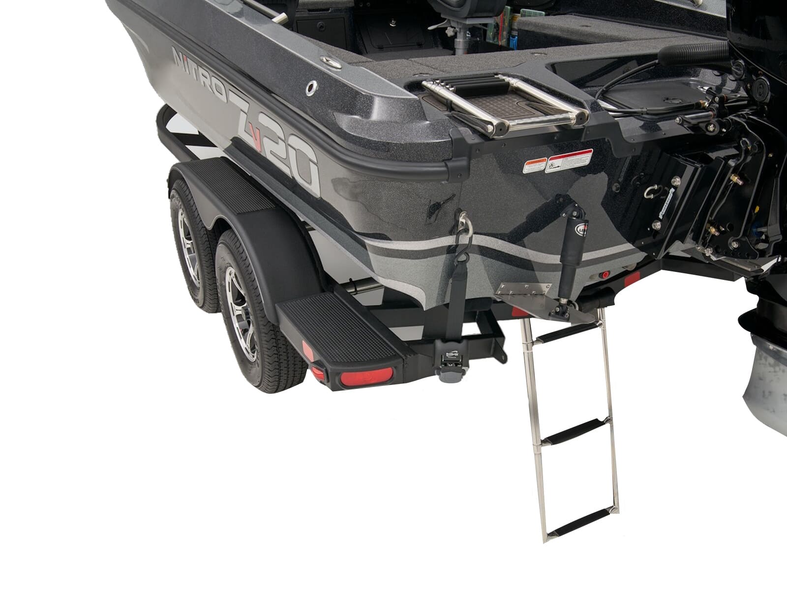 - Integrated step & safety handle for boarding at bow while boat is on trailer