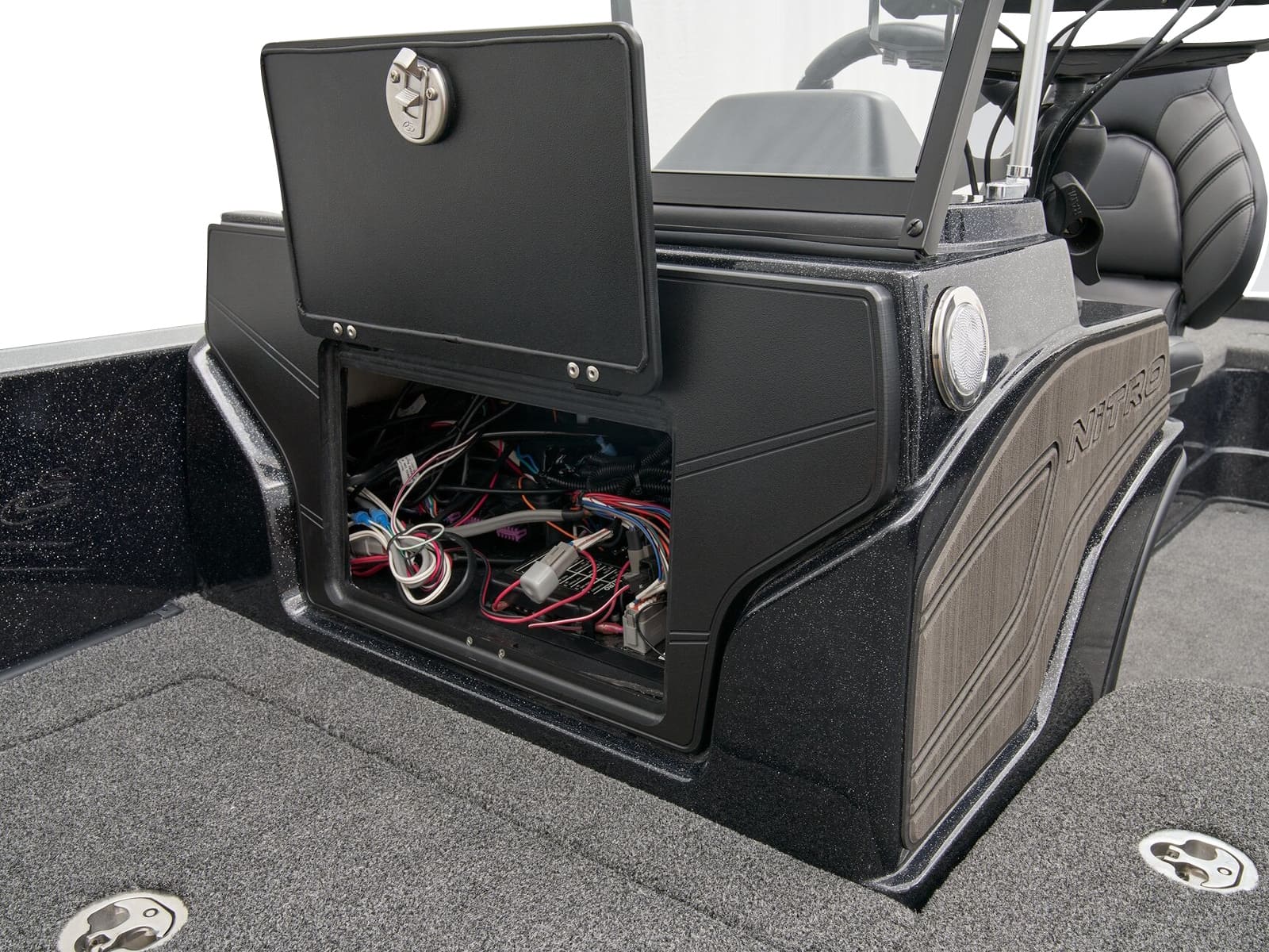 - Bow panel w/trolling motor receptacle, navigation light, anchor light & trim switches