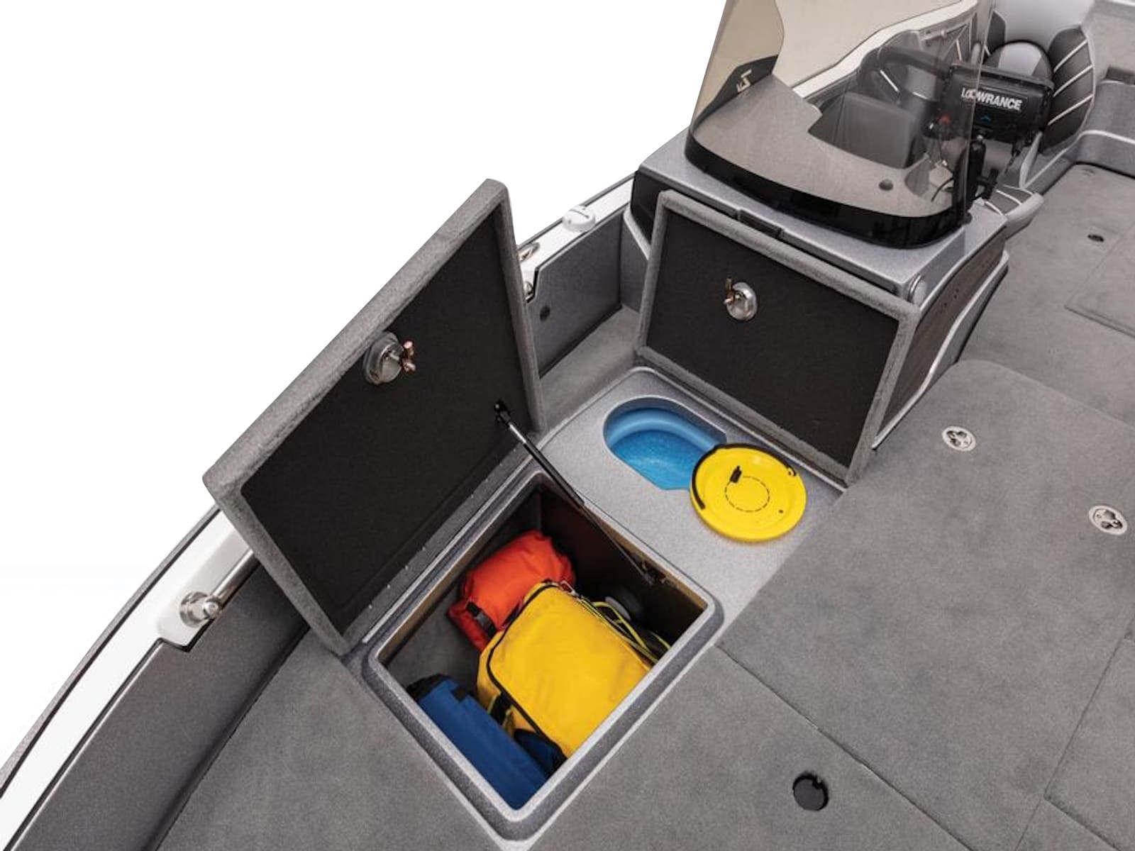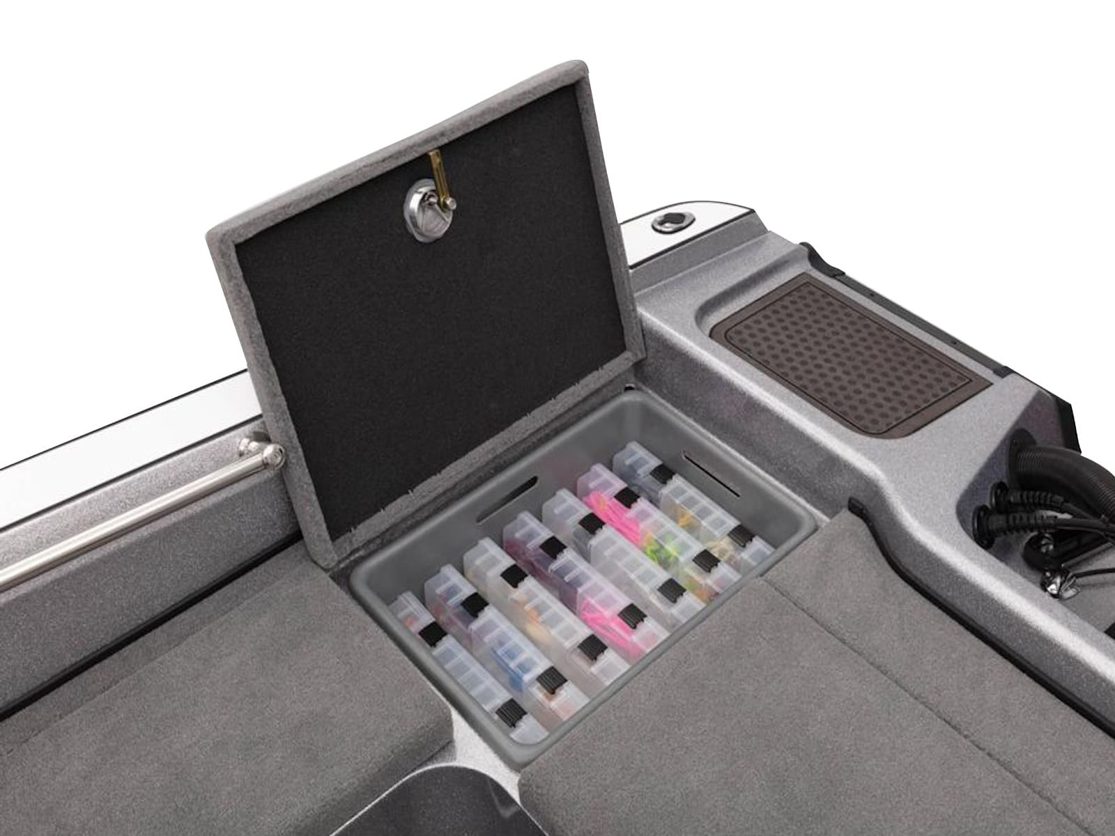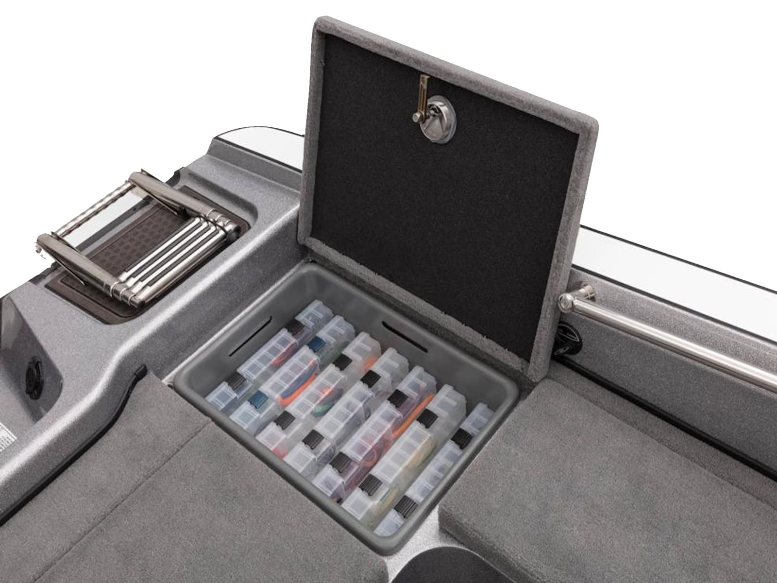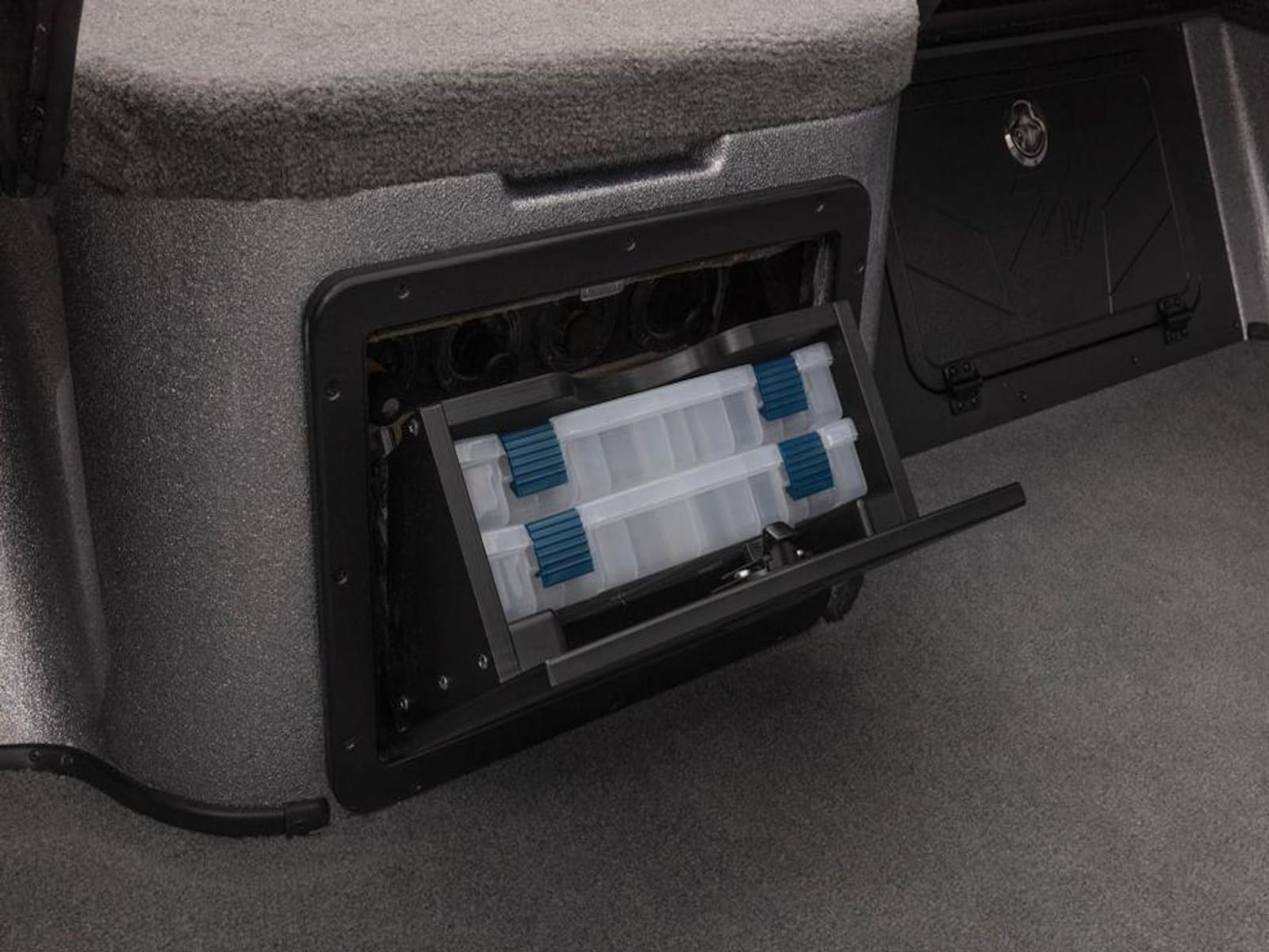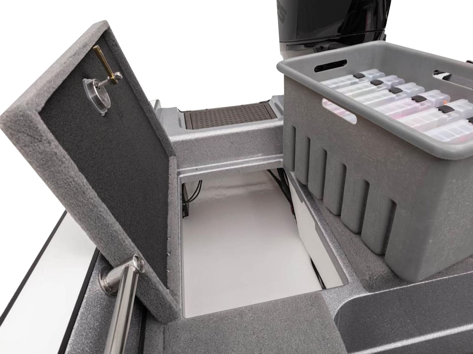 - 2 lift-out, molded & lockable aft storage boxes that will each accept seven 3700 tackle trays