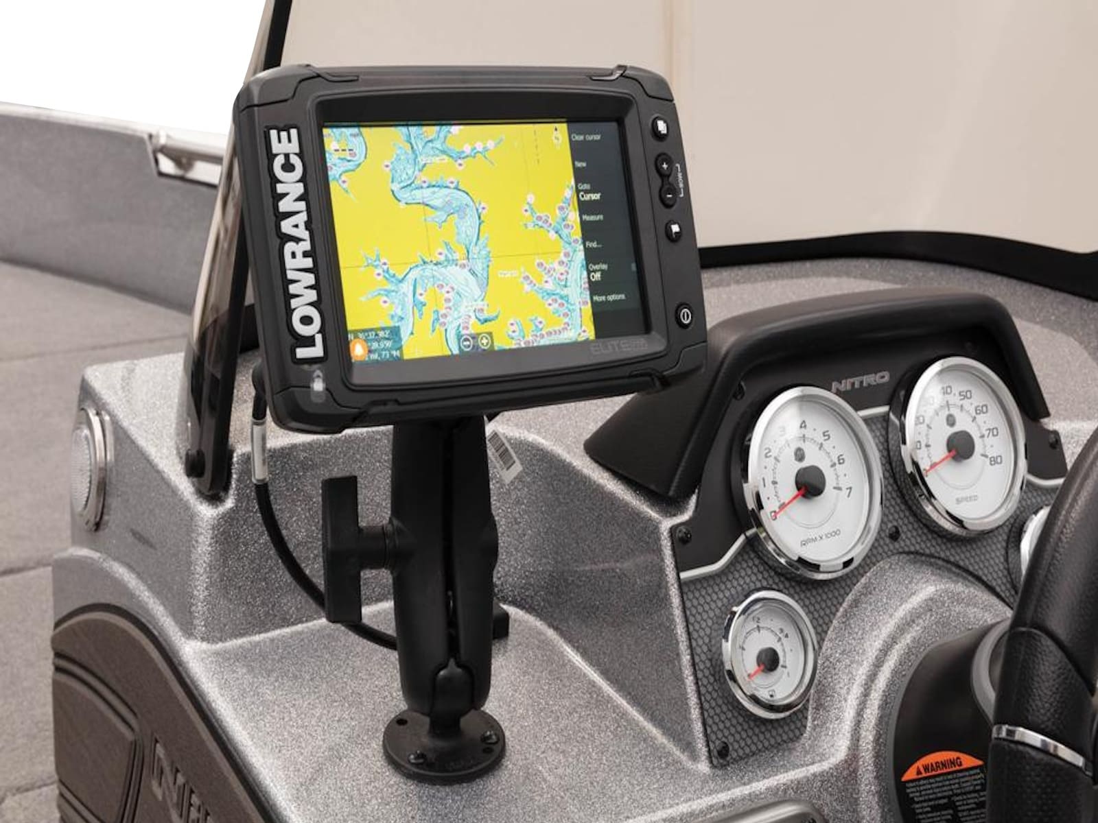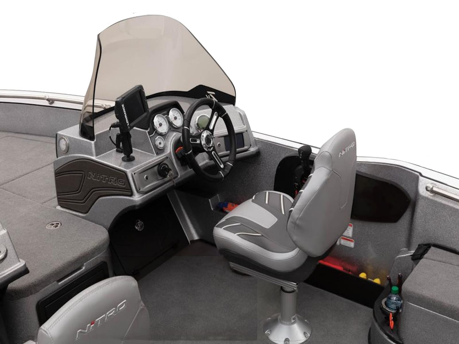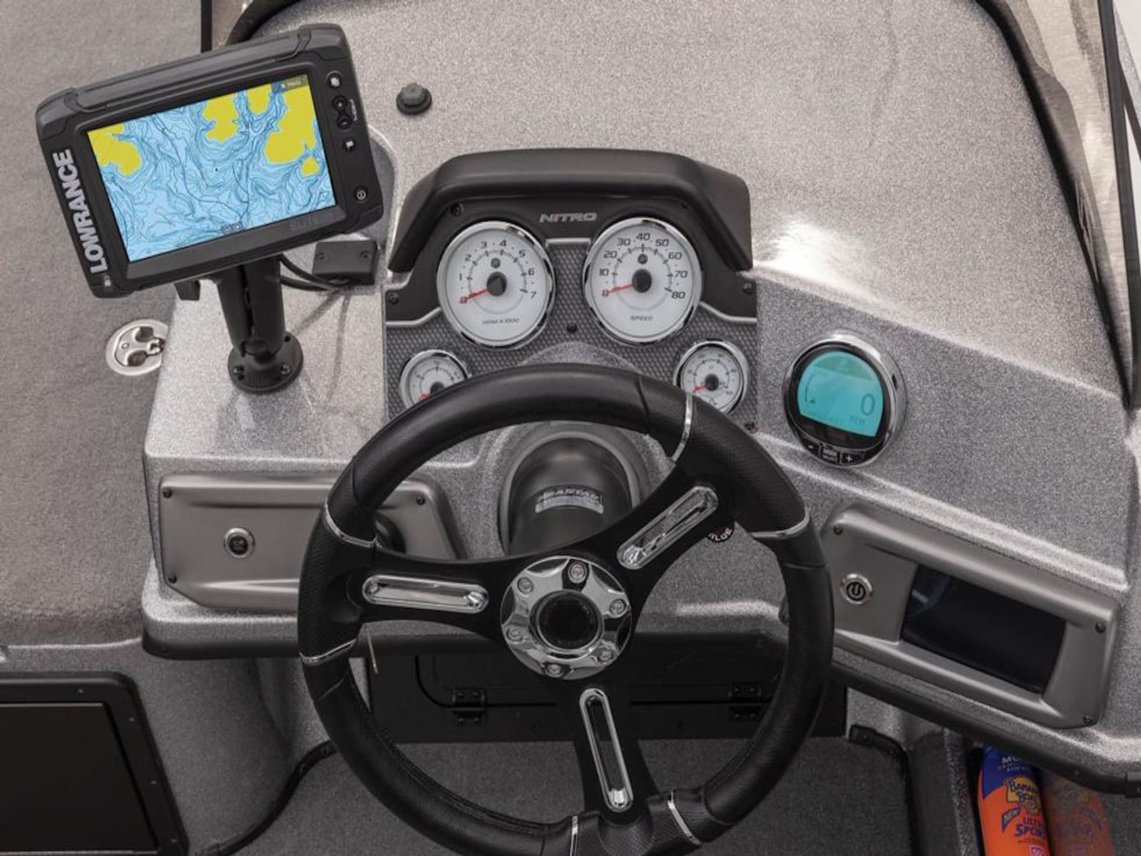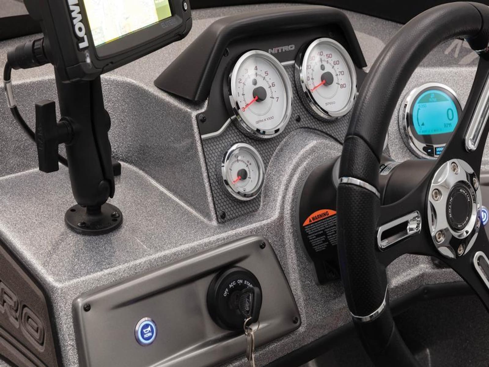 - 5" (12.7 cm) NITRO® Z-TOUCH™ digital touchscreen control w/1-touch boat controls including First Fish & Nite modes; master power; trim; lighting; bilge; livewells & more