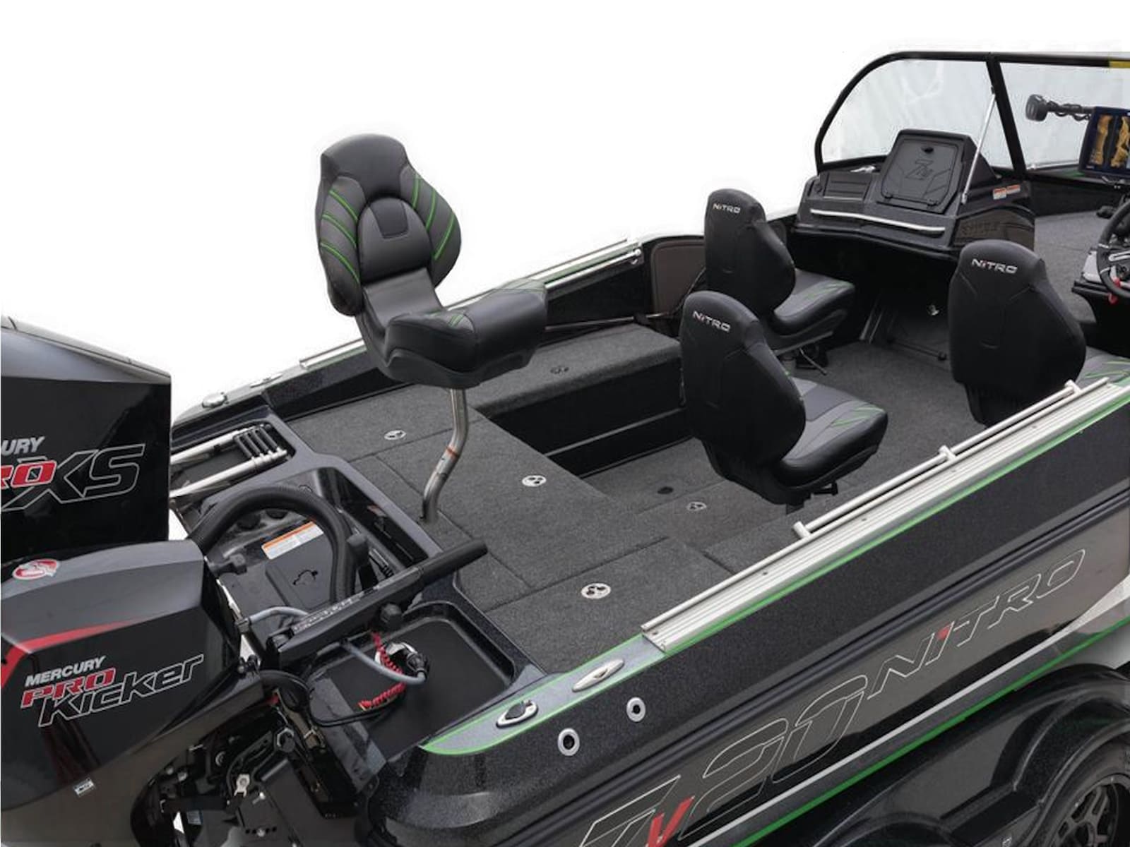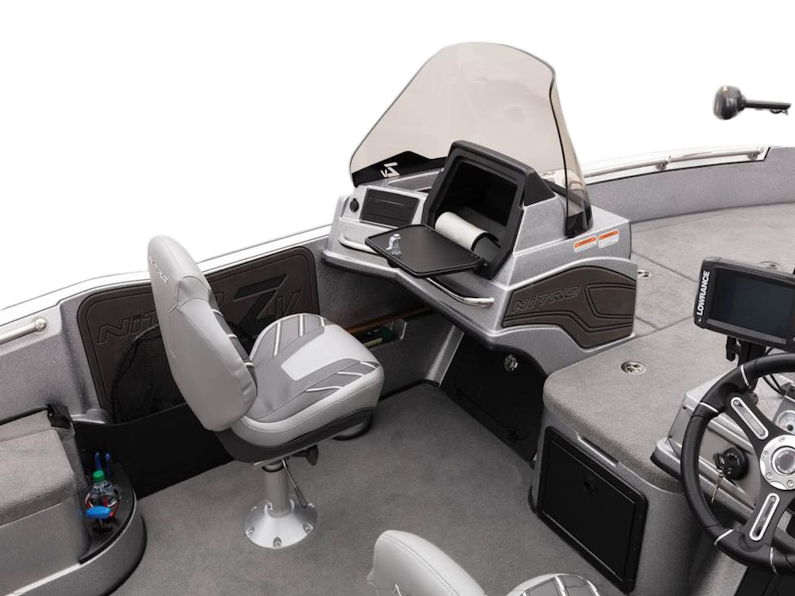 The NITRO® ZV20 is a formidable Deep V fishing boat with the brute strength of a 300HP rating, the fishability you need to conquer the toughest tournament trails, and a hull made to crush swells with ease. It features the NITRO® Z-TOUCH touchscreen control unit that provides command of boat functions with the tap of a finger, and angler-friendly programs like the innovative First Fish function, which automatically fills and recirculates the livewell. A handy key fob controls many of the same functions.