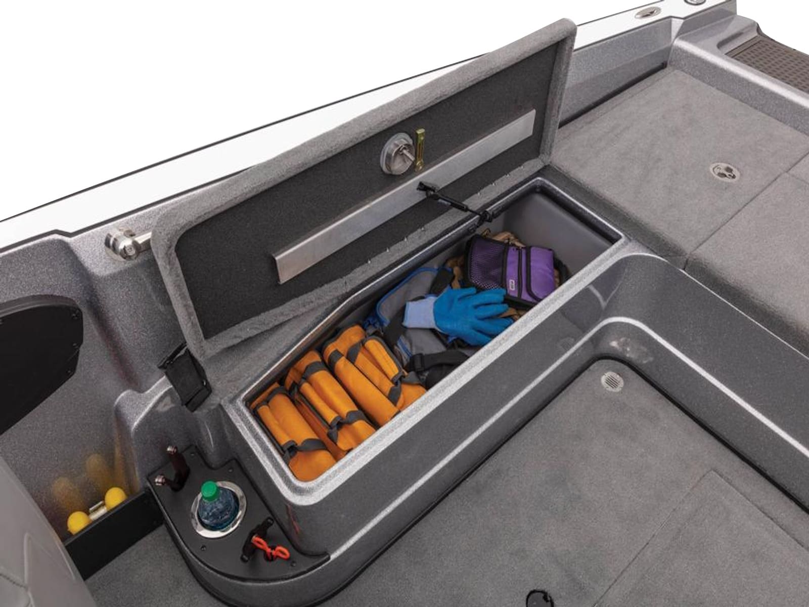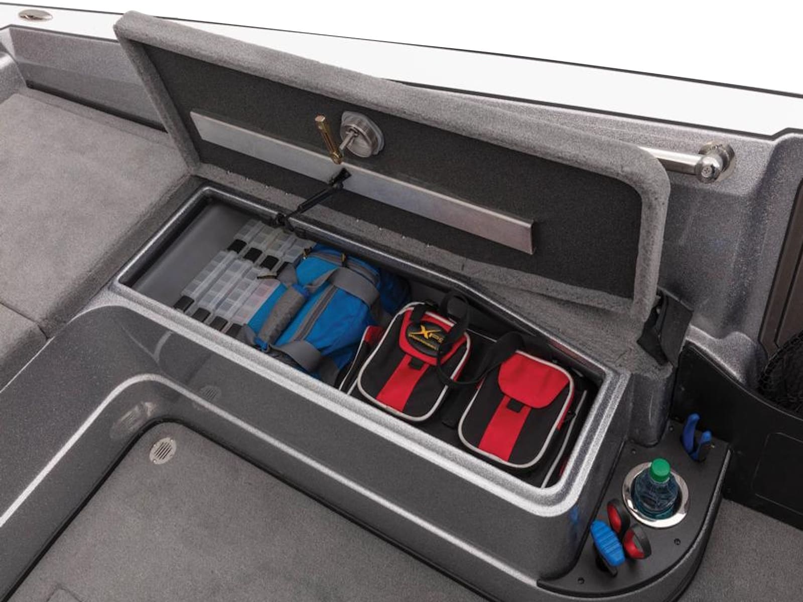 - Manual LED-lighted bow storage compartments