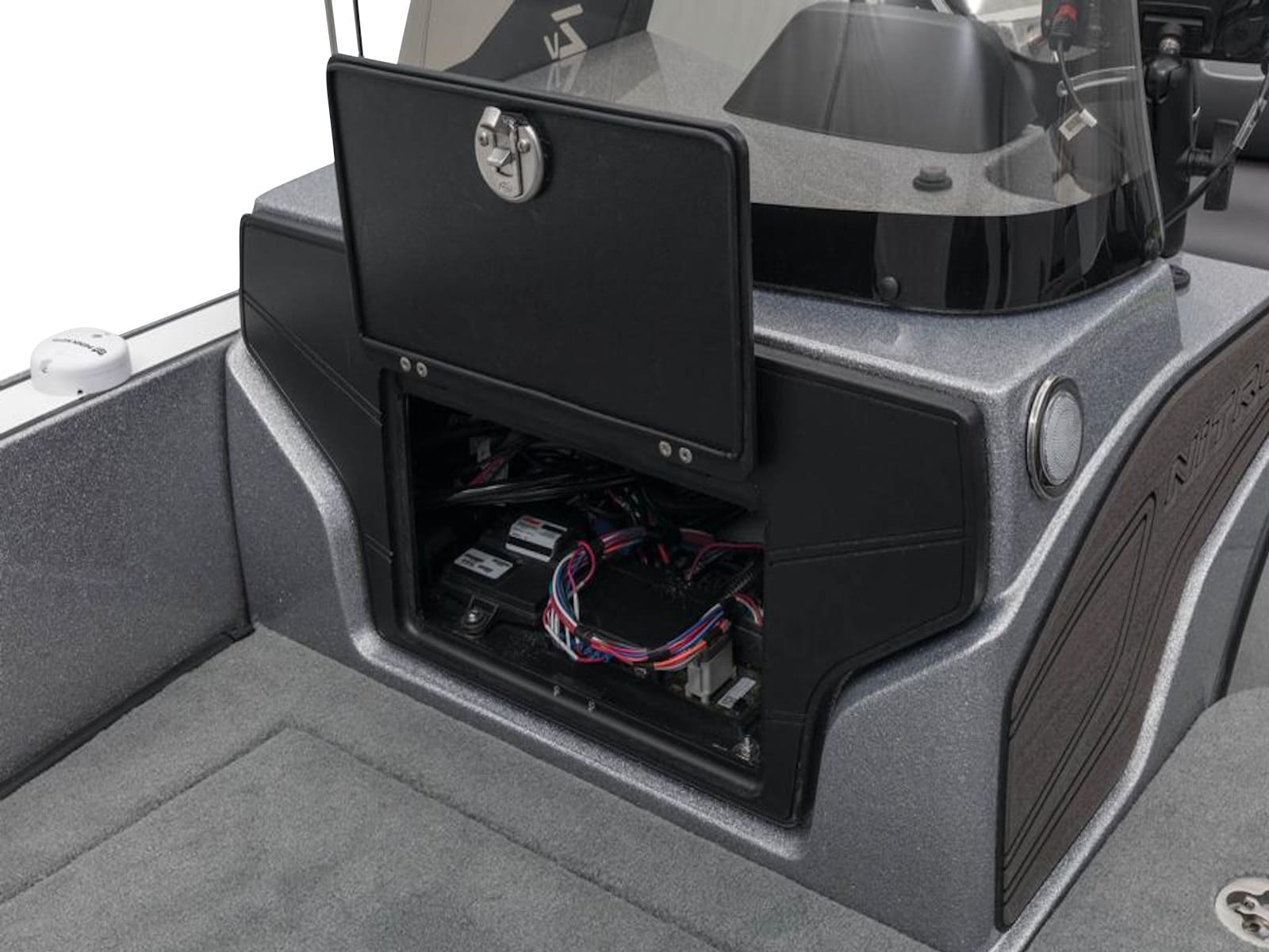 - Bow panel w/trolling motor receptacle, navigation light, anchor light & trim switches