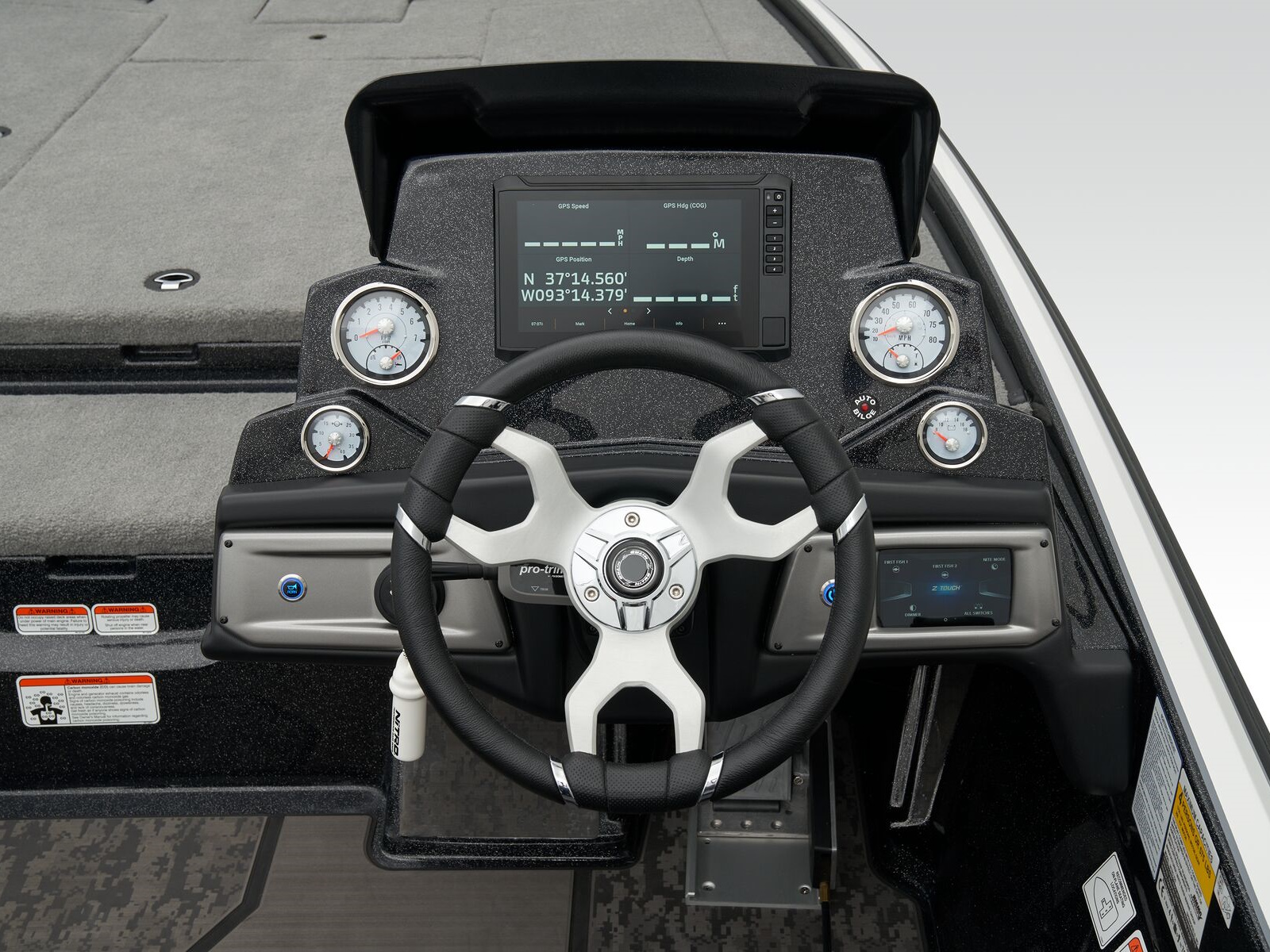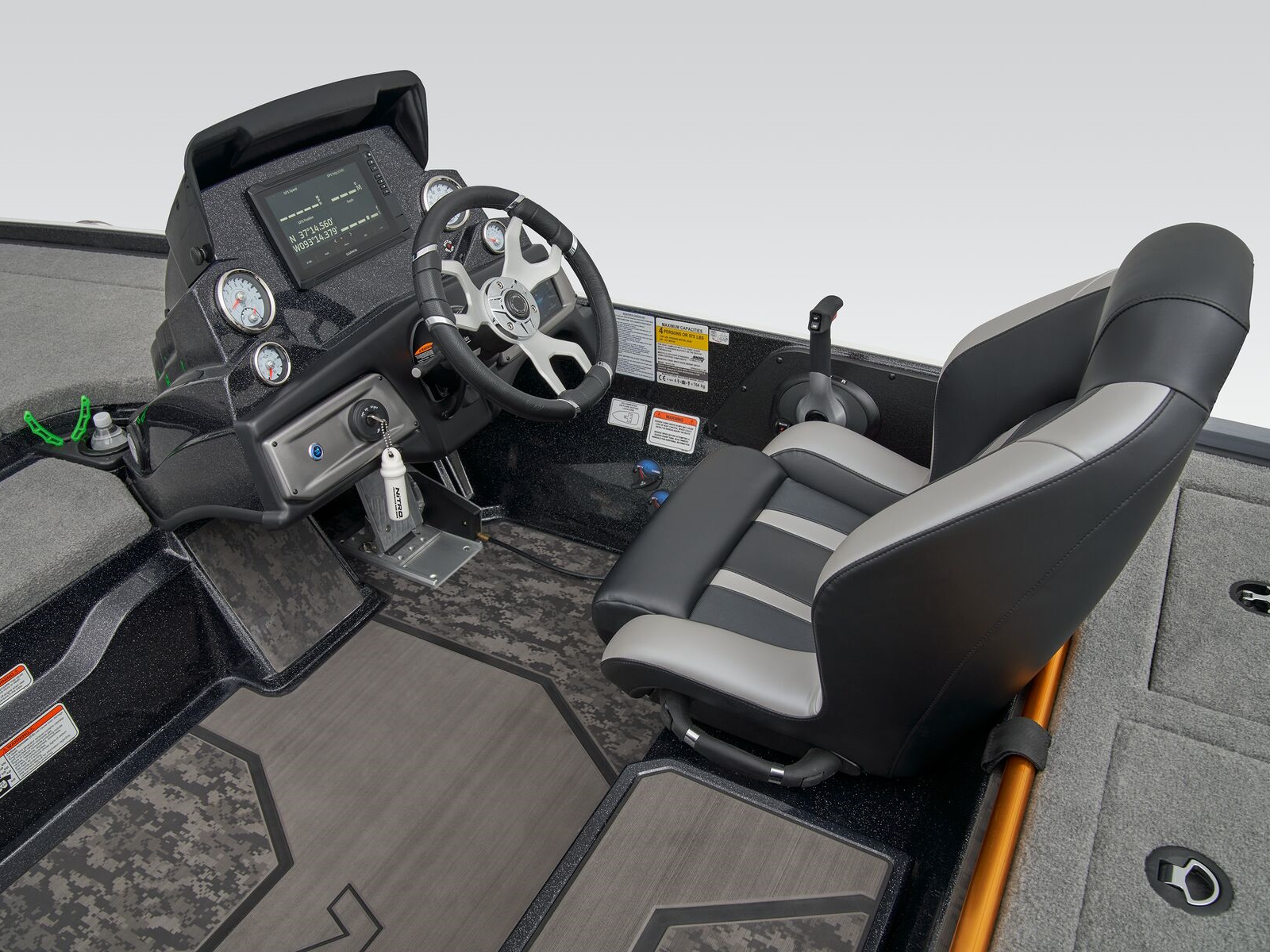 - Modular, aerodynamic console design w/expanded leg clearance & large fishfinder surface