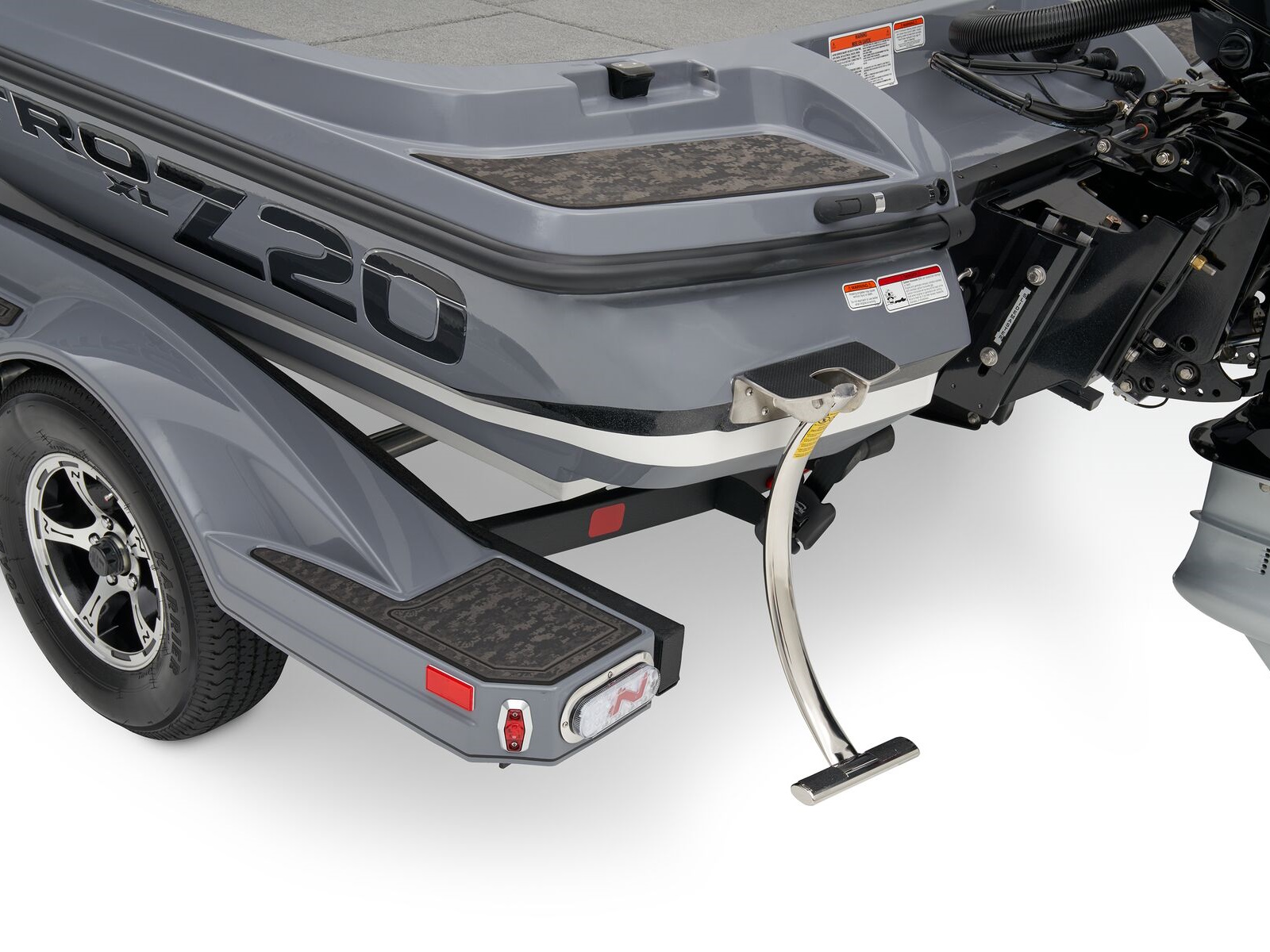 - Integrated winch stand step & safety handle for boarding at bow while boat is on trailer