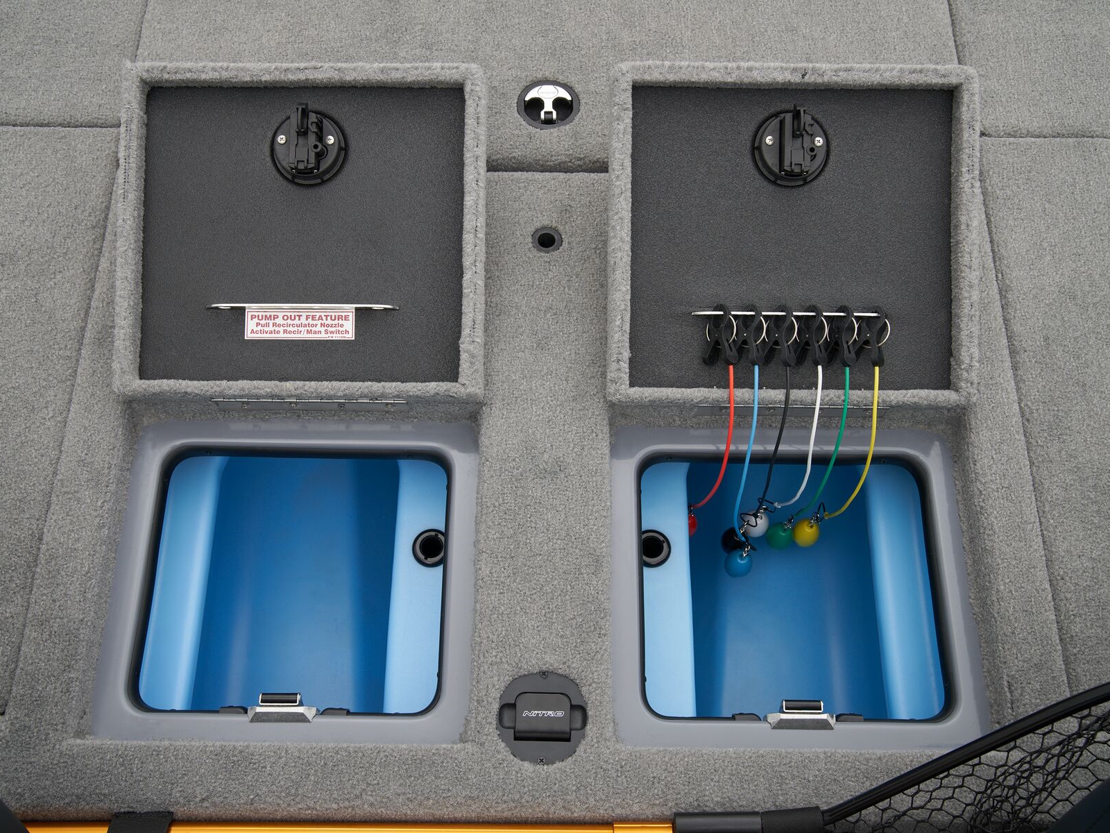 - 2 aft 19-gal. (71.92 L) insulated, rotomolded GUARDIAN™ livewells w/digital timers & rounded corners
