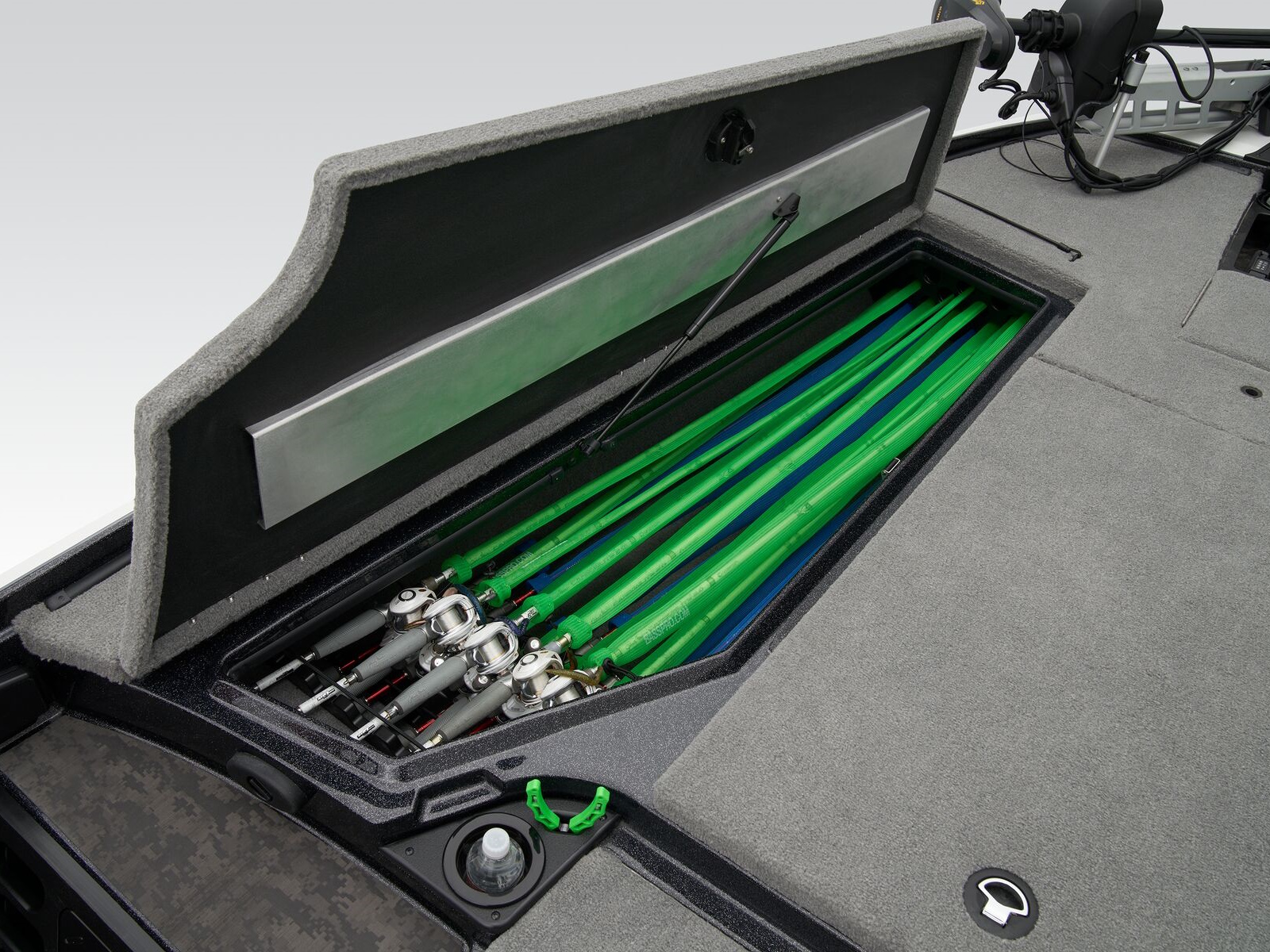 - Oversized, lockable bow port & starboard rod lockers w/lift assists for rods up to 8' (2.44 m)