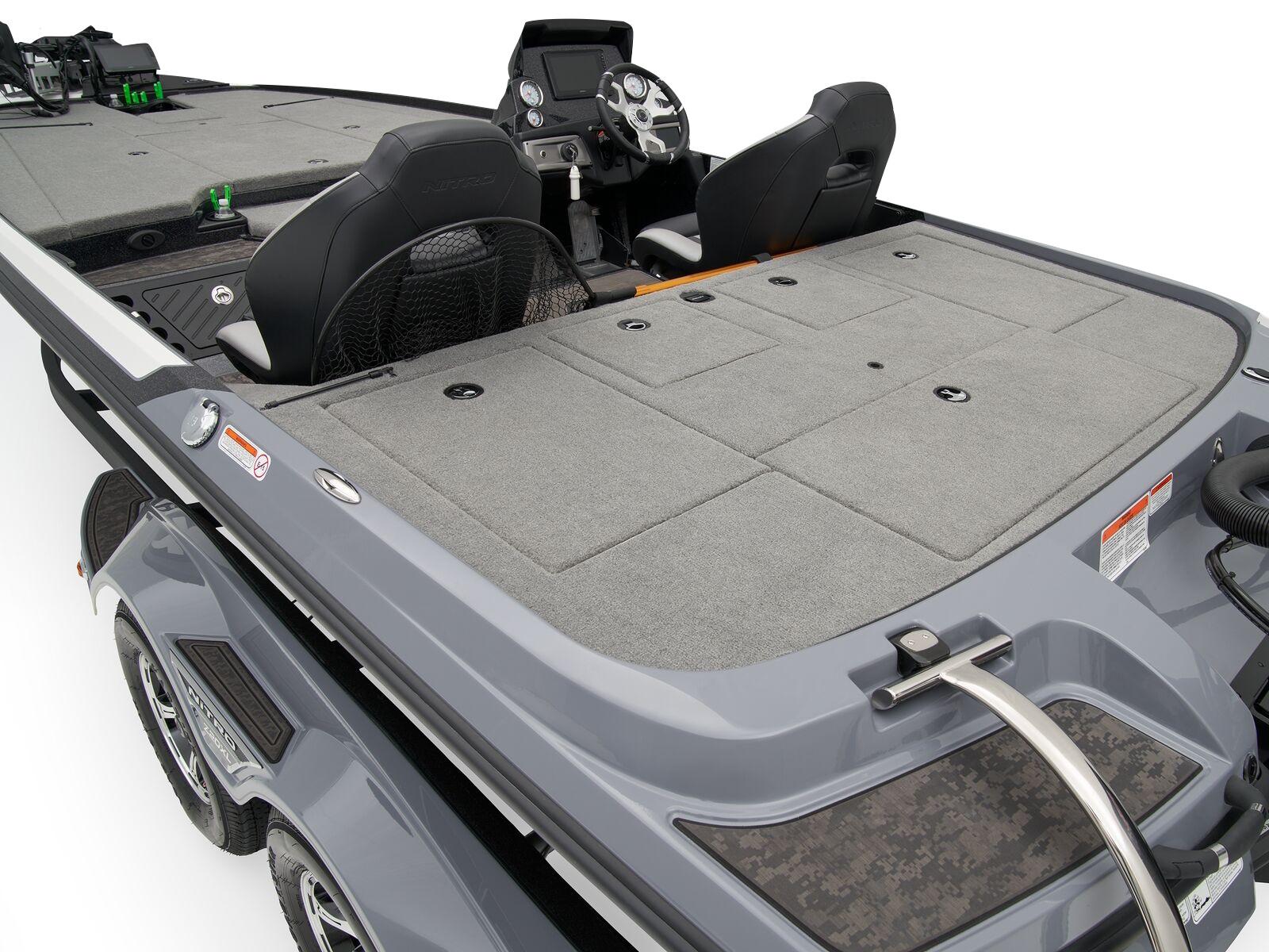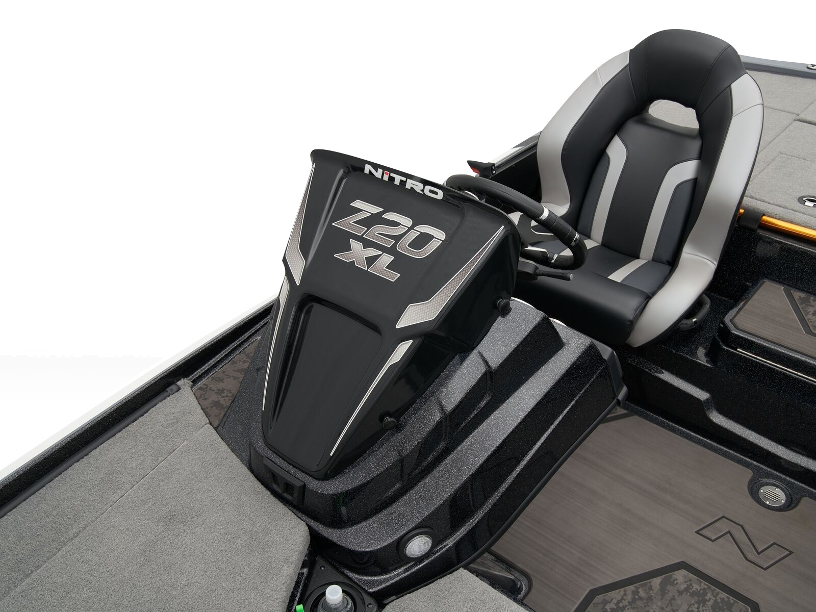 The Z20 XL is the rig that many touring pros choose yearn and year out, whether its for its all-around performance, superior layout, or clever amenities that make the more effective. The console carries the NITRO Z-TOUCH™ touchscreen control unit gives you realtime data on your boat’s critical functions as well as simple, reliable gauges, and responsive steering. A huge port rod locker carries scores of sticks safely and conveniently, while the monster center stow can be divided any way you see fit, to best tailor it to your style of fishing. These lids feature gas-assist struts for easy opening and large, raised lips to keep the elements at bay.