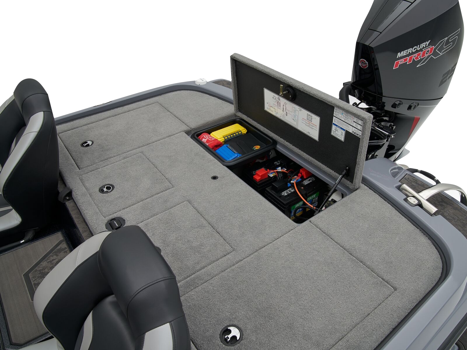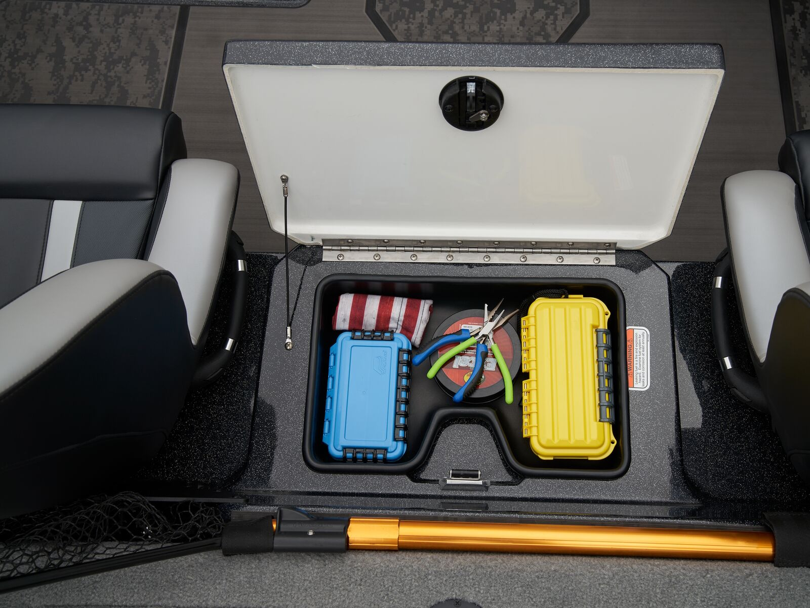 - Oversized lockable bow center storage locker w/TACKLE MANAGEMENT SYSTEM™