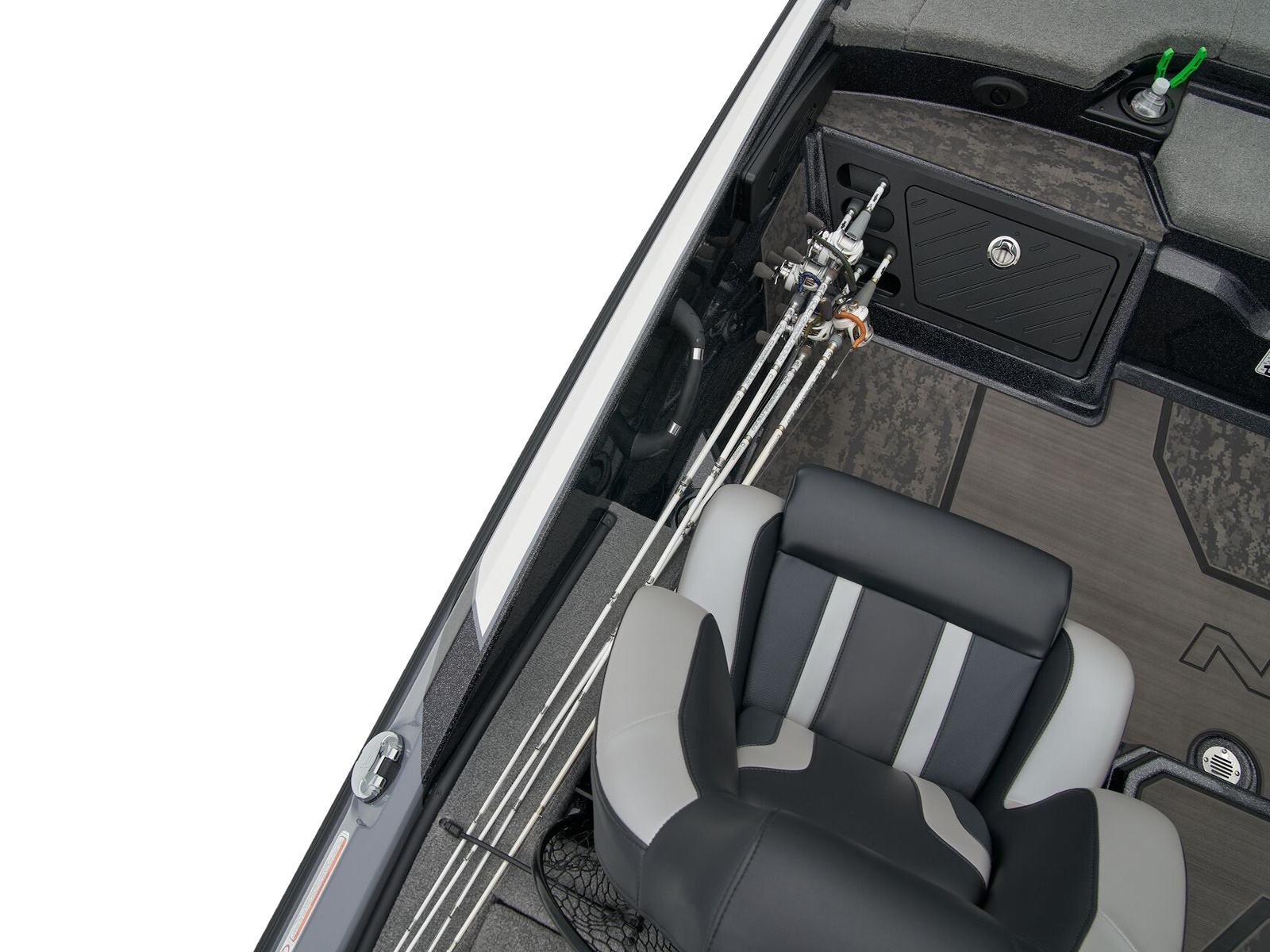 - Rod organizer in bow port rod locker