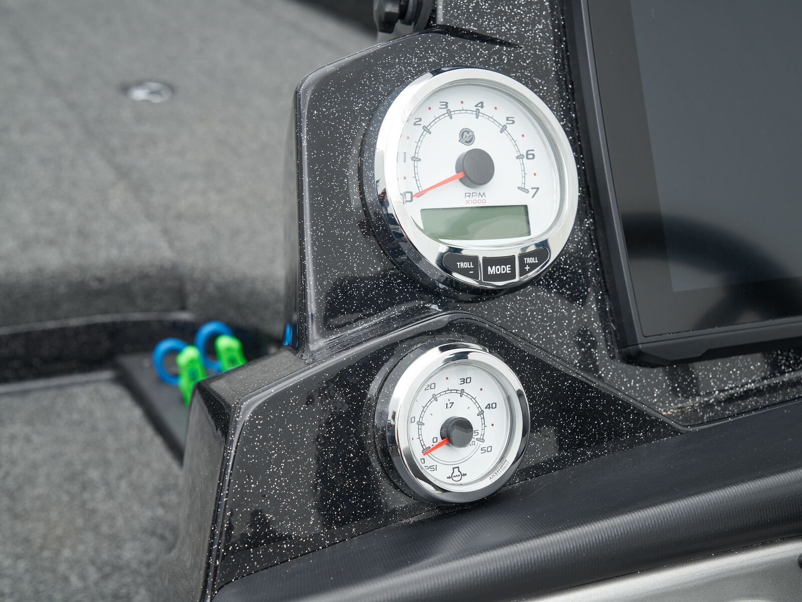 - Veethree® multifunction instrumentation w/speedometer/fuel gauge, tach/trim gauge, voltmeter gauge & water pressure gauge
