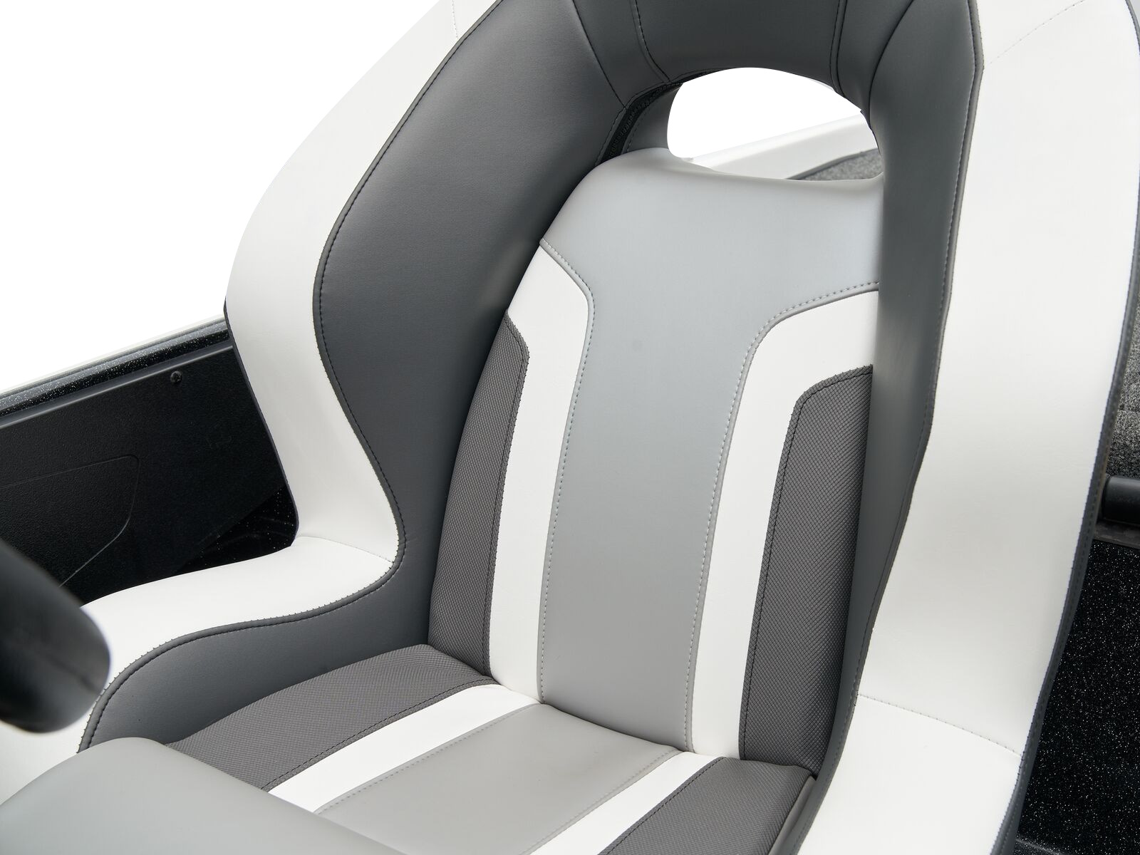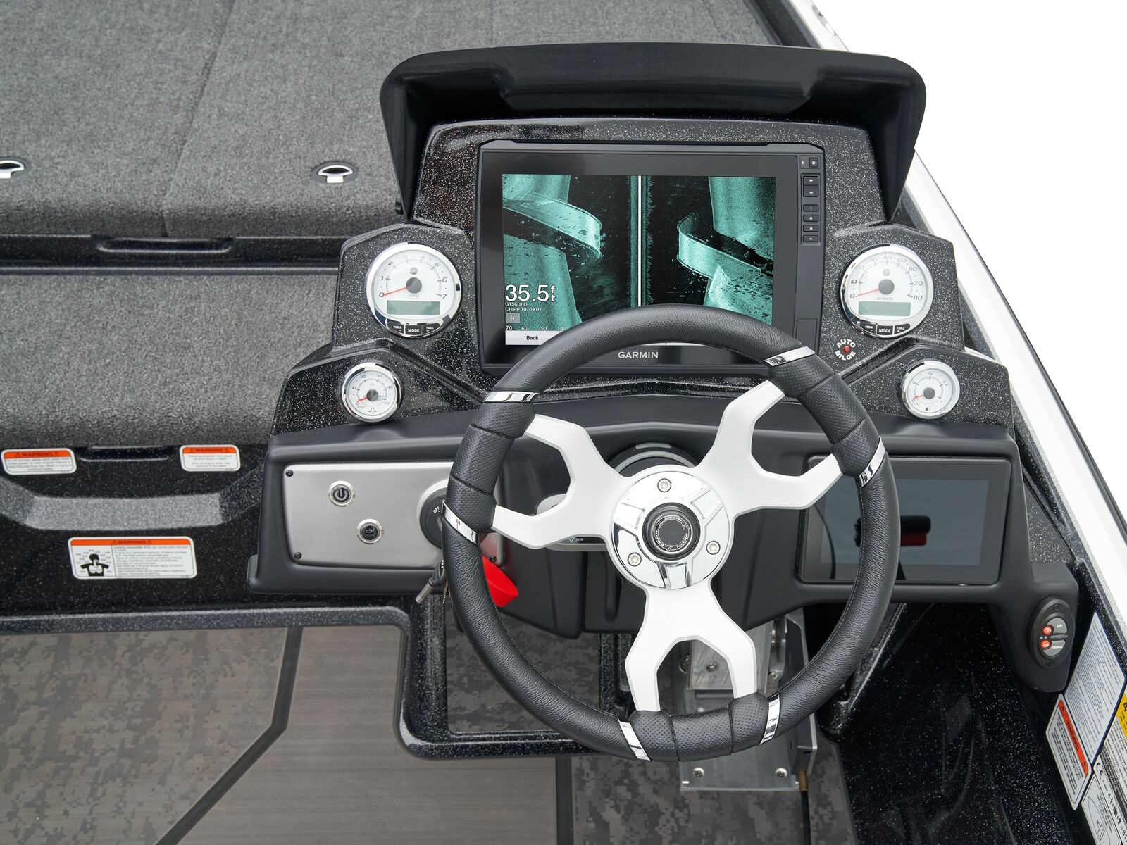 - Modular, aerodynamic console design w/expanded leg clearance & large fishfinder surface