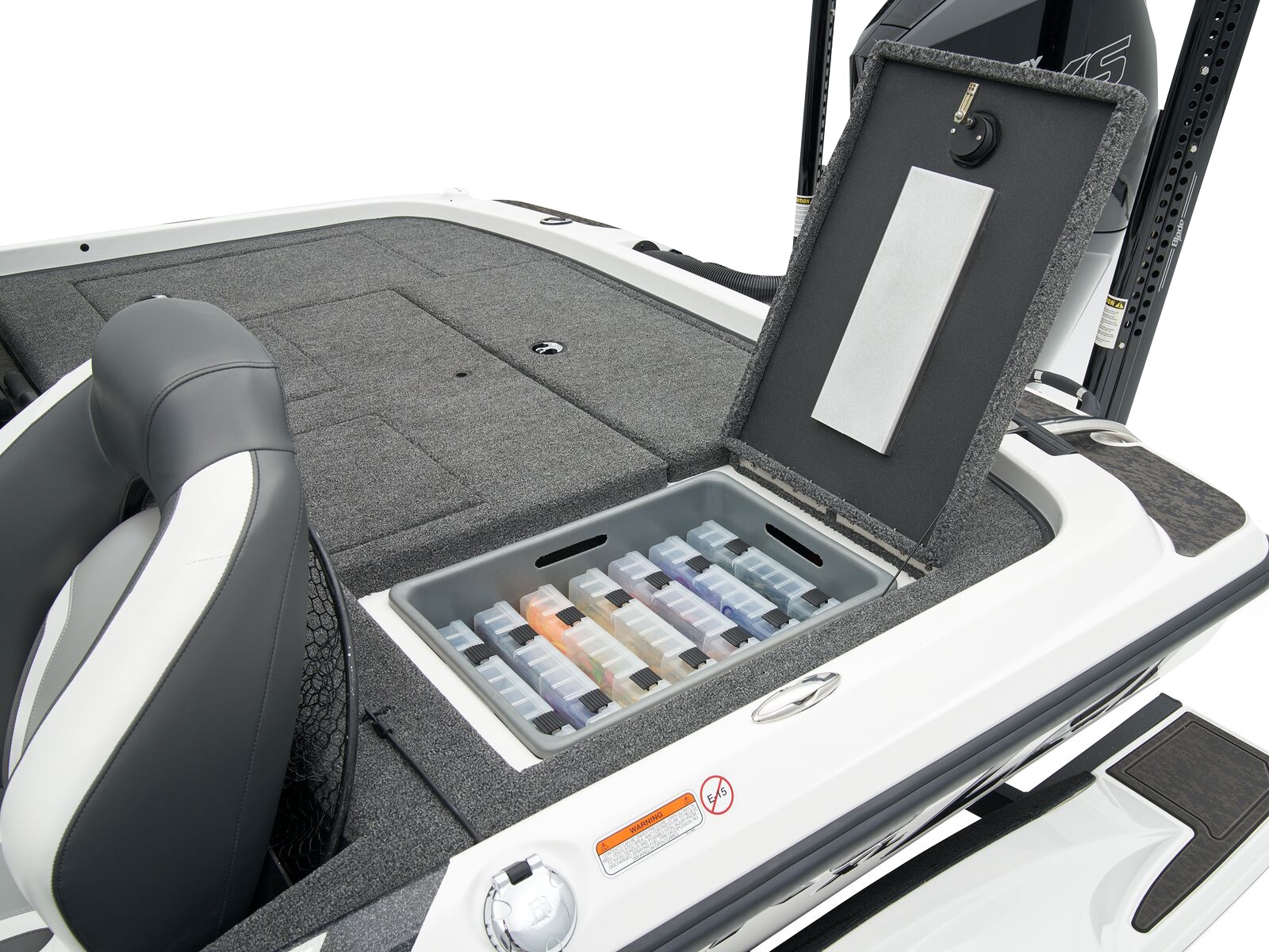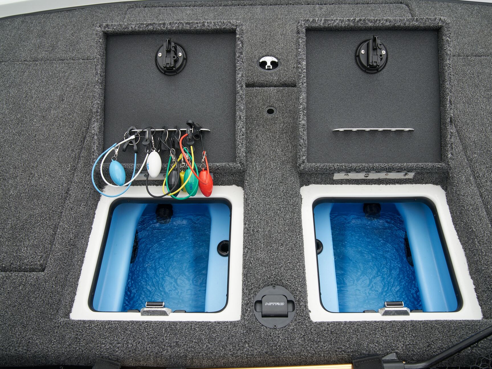 - 2 aft 19-gal. (71.92 L) insulated, rotomolded GUARDIAN™ livewells w/digital timers & rounded corners