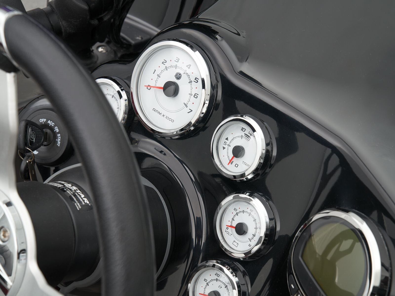 - Veethree® multifunction instrumentation gauges w/speedometer/fuel gauge, tach/trim gauge, voltmeter gauge & water pressure gauge