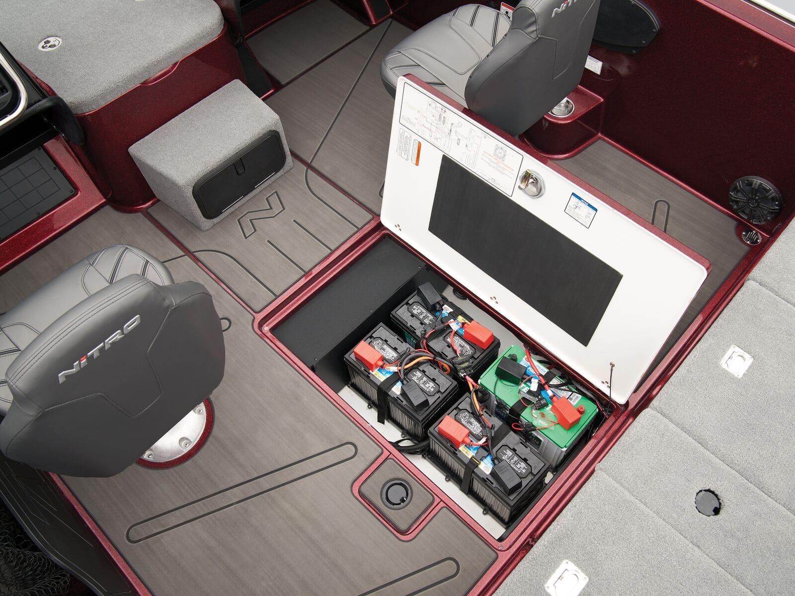 - Midship in-floor storage for 5 batteries