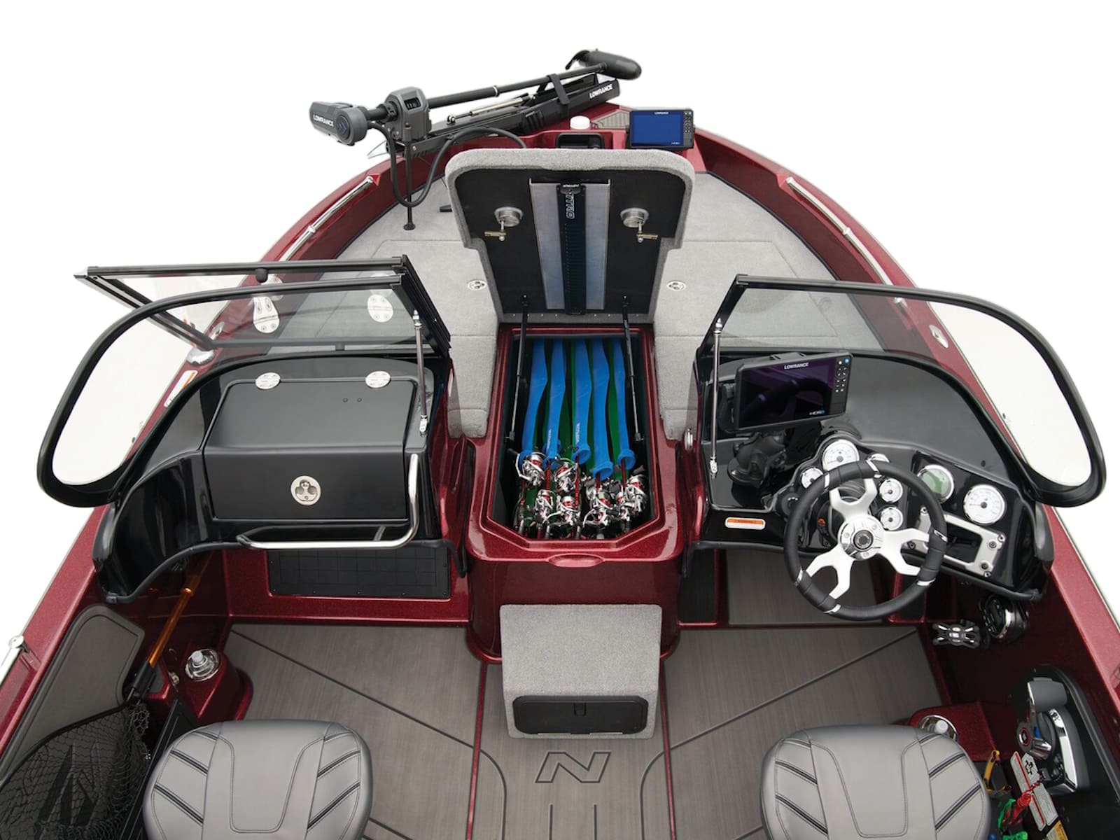 - Step to bow deck w/storage for two 3600 tackle boxes