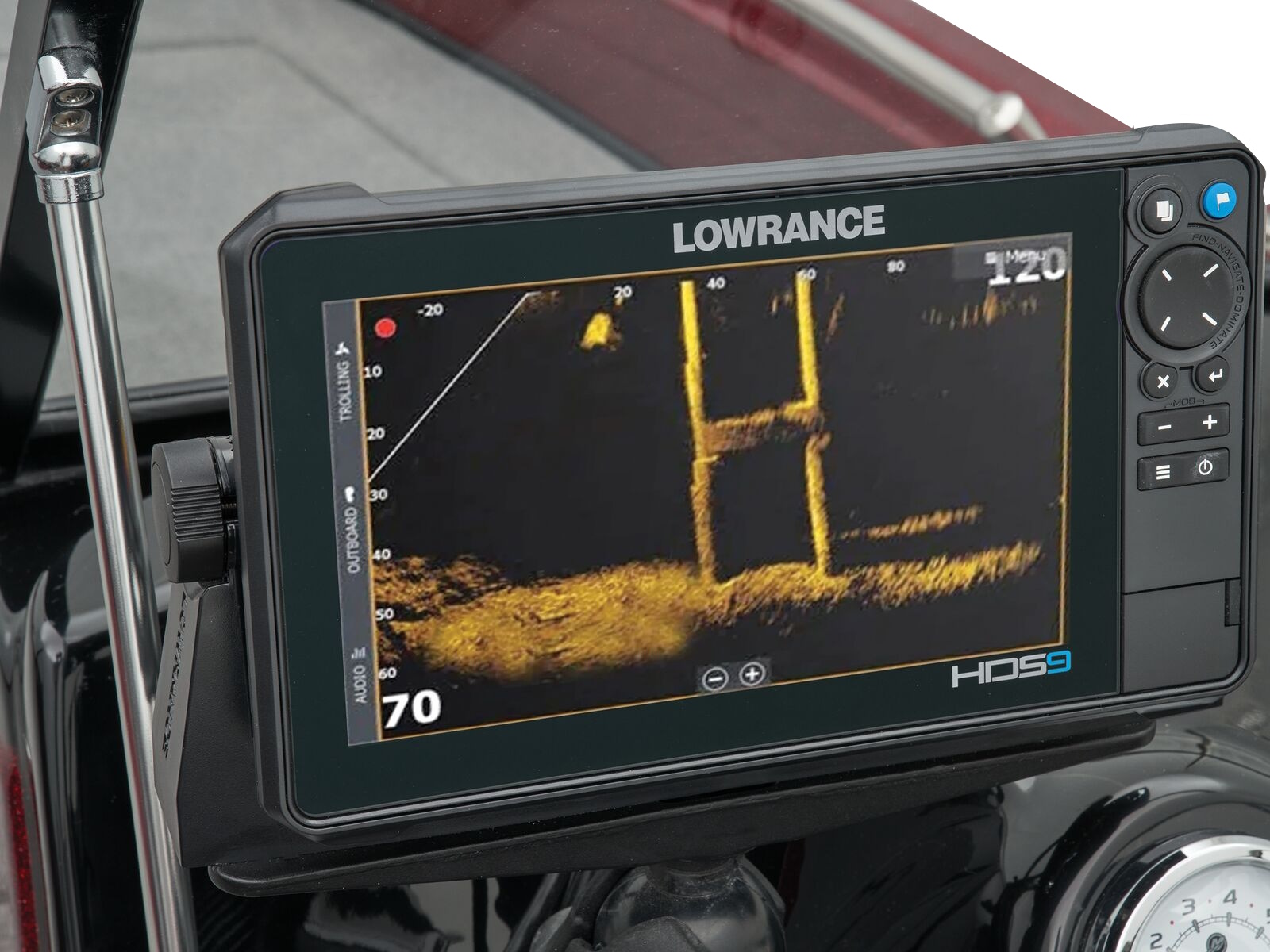 - NEW bow Garmin® ECHOMAP™ UHD2 9” (22.86 cm) sv RAM®-mounted fishfinder w/LiveScope™ Plus System