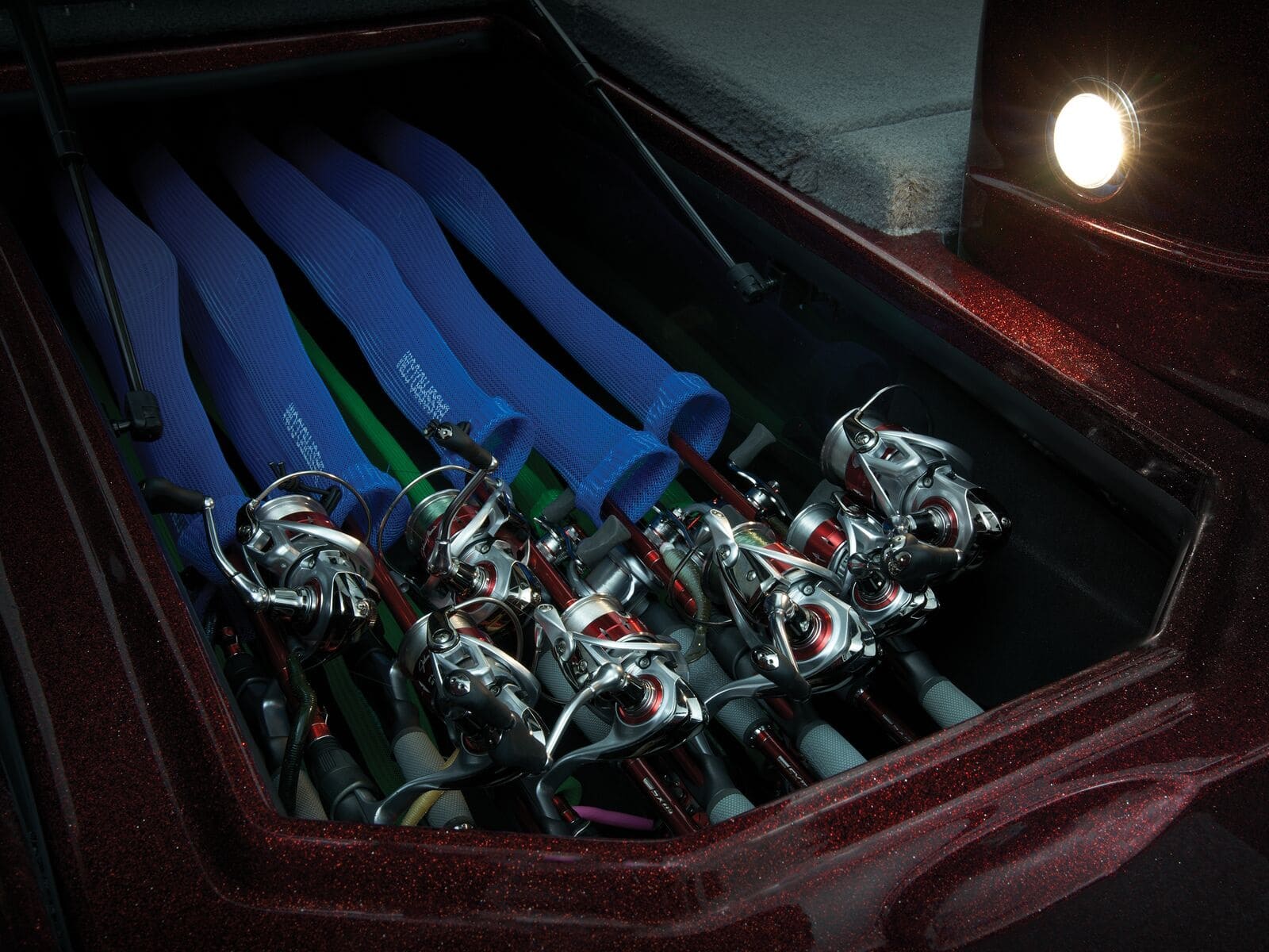 - 3-level center rod locker for rods up to 8' (2.44 m) w/tapered rod tubes to protect rod tips