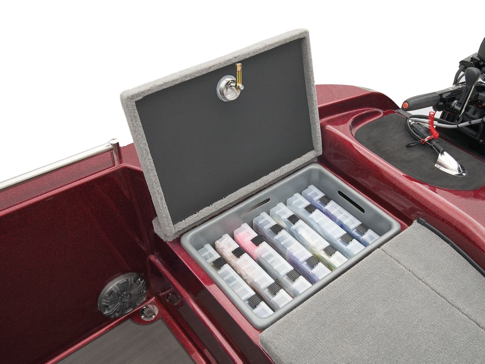 - 2 lift-out, molded & lockable aft storage boxes that will each accept seven 3700 tackle trays