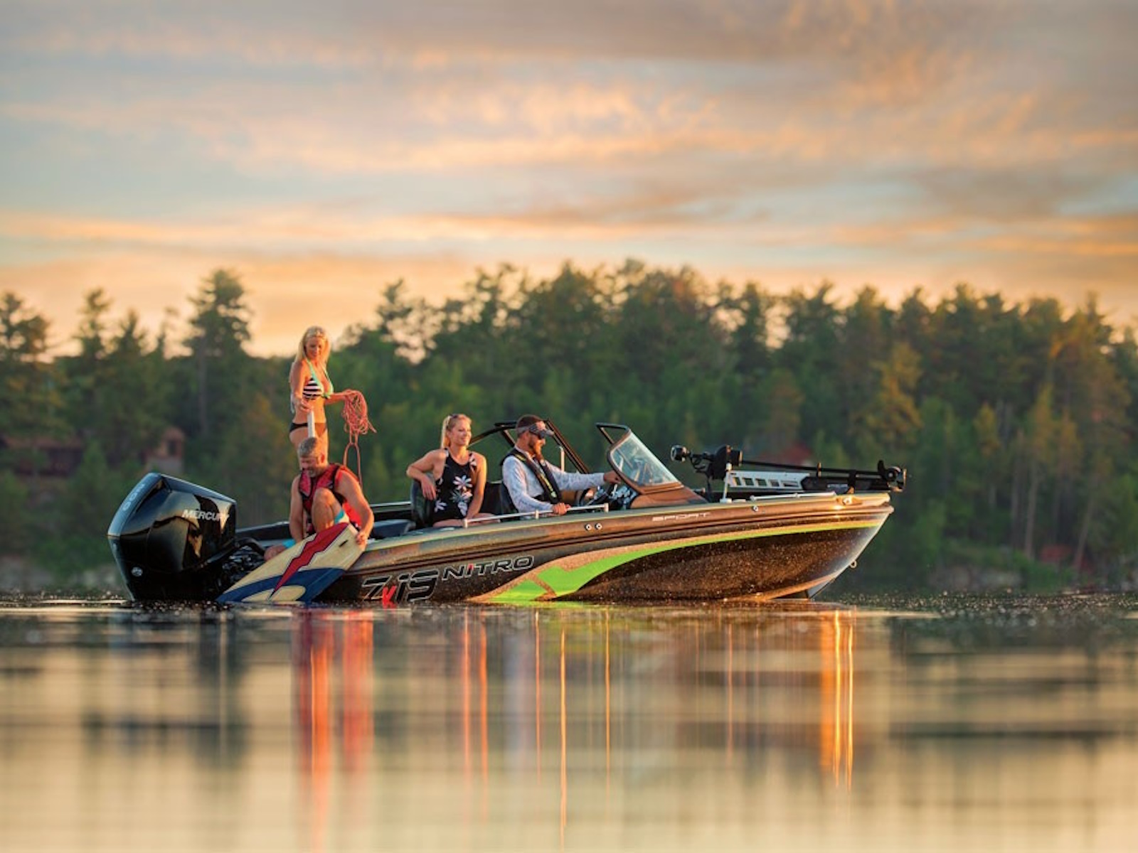 When your family wants to take in everything the water has to offer, you need a boat that’s up to any task—with no compromise. The NITRO®ZV19 Sport is designed to carry a load of friends or family to do whatever the day has in store. When you’re setting off with fish in your sights, the ZV19 Sport has a Lowrance® Eagle 5 fishfinder at the bow to lead the way, and a burly Minn Kota® rolling motor to get you up close and personal. Dual aerated live wells in the rear deck keep keepers lively, while a baitwell in the front deck keeps bait fresh and handy.