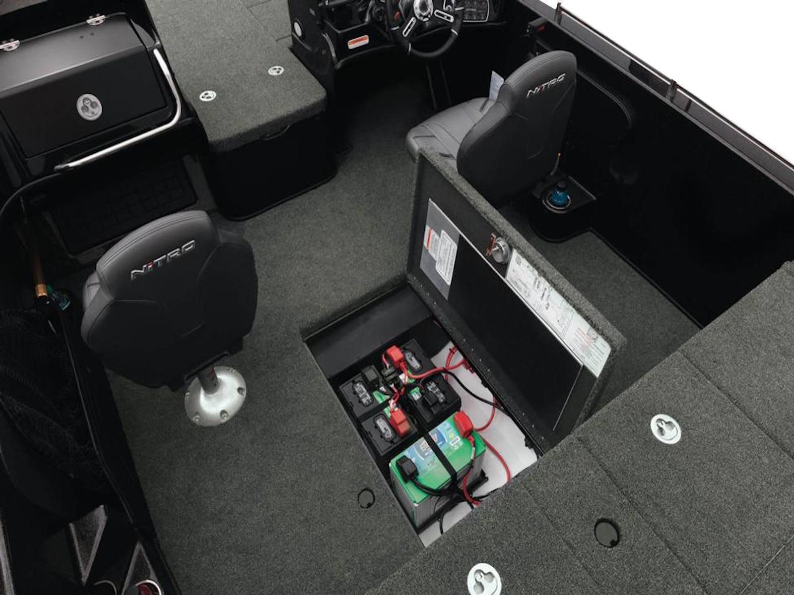 - Midship in-floor storage for 5 batteries