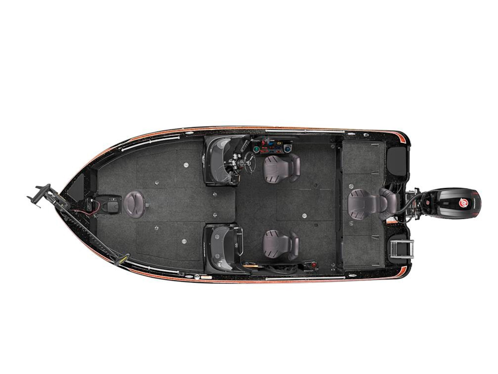 - Bow panel w/trolling motor receptacle, navigation light, anchor light & trim switches