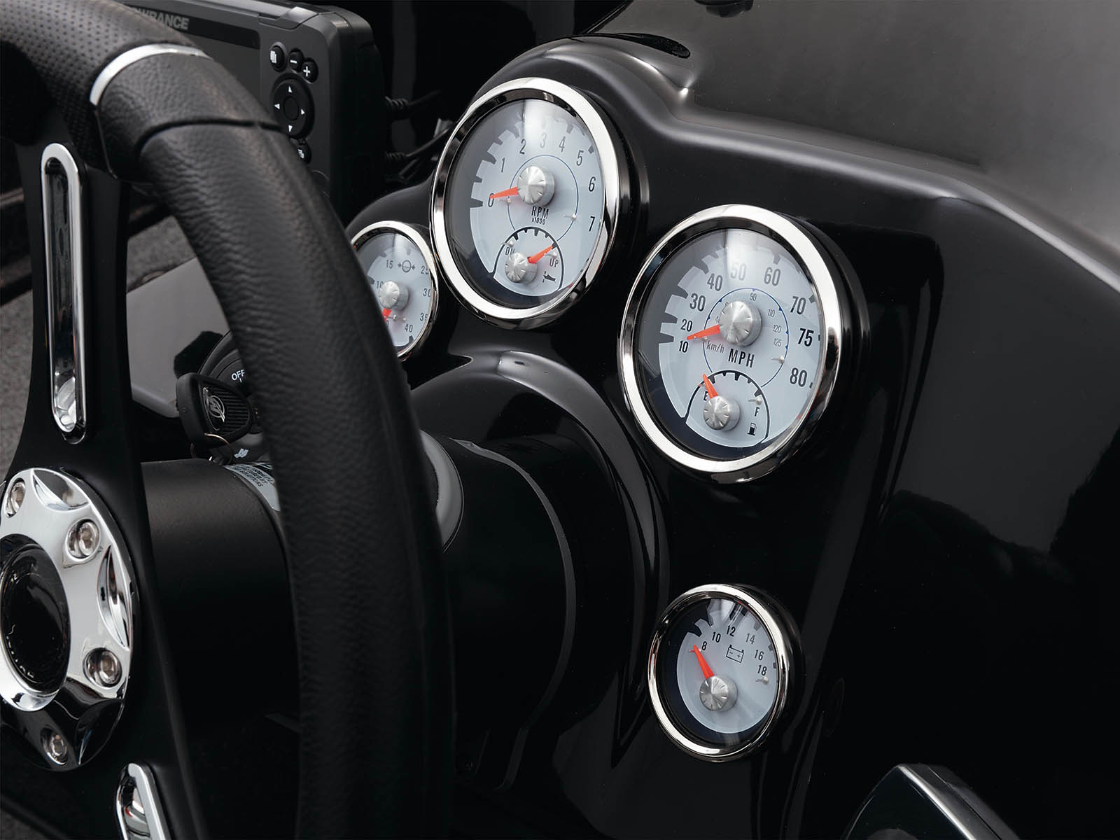 - Veethree® multifunction instrumentation gauges w/speedometer/fuel gauge, tach/trim gauge, voltmeter gauge & water pressure gauge