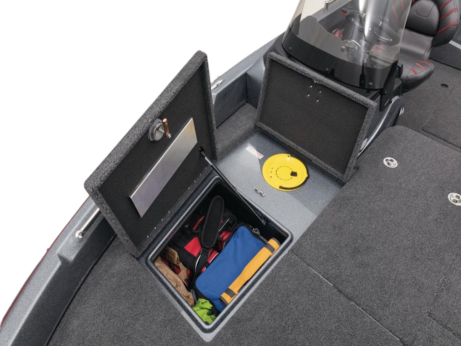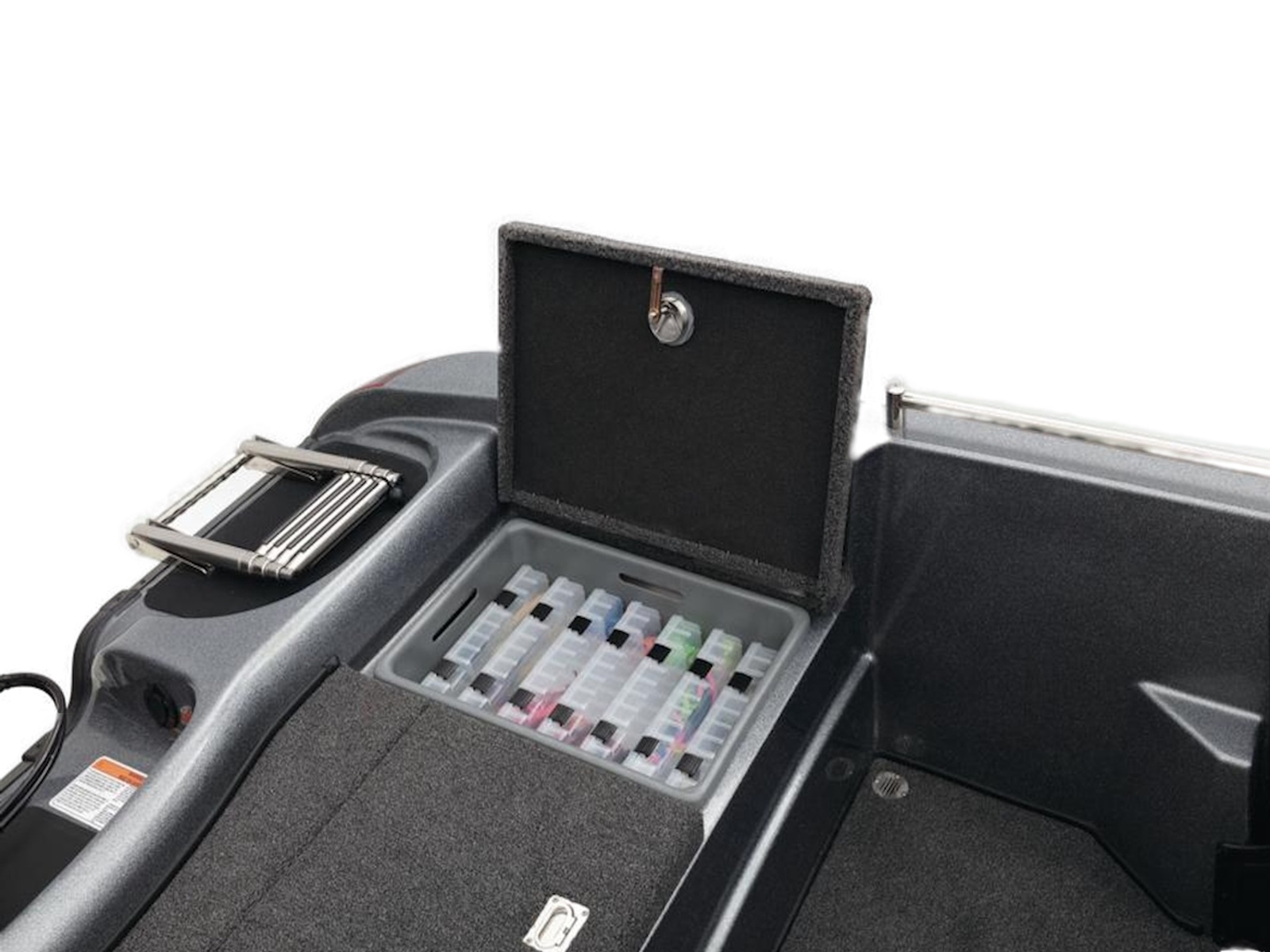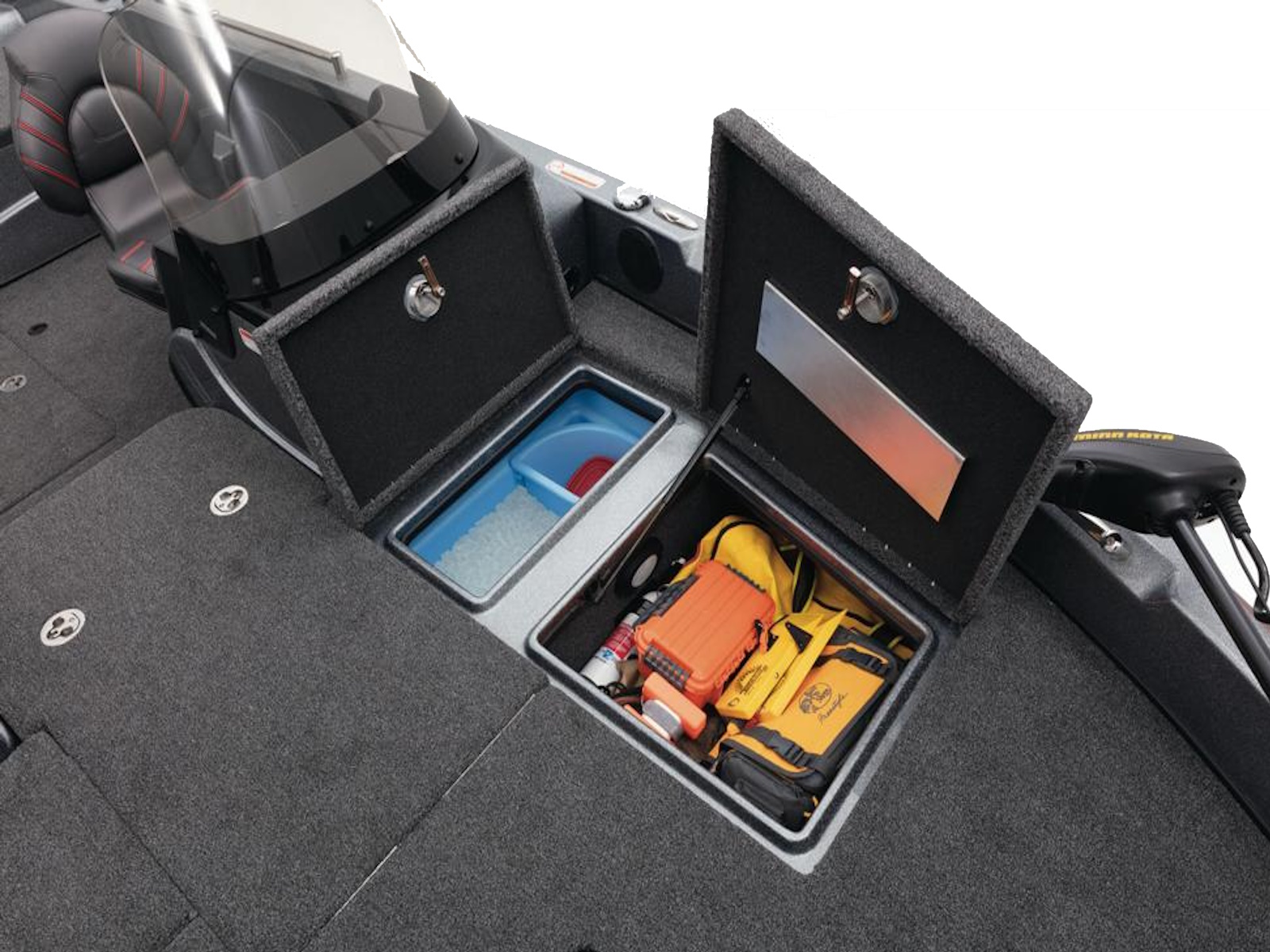 - 2 lift-out, molded & lockable aft storage boxes that will each accept seven 3700 tackle trays