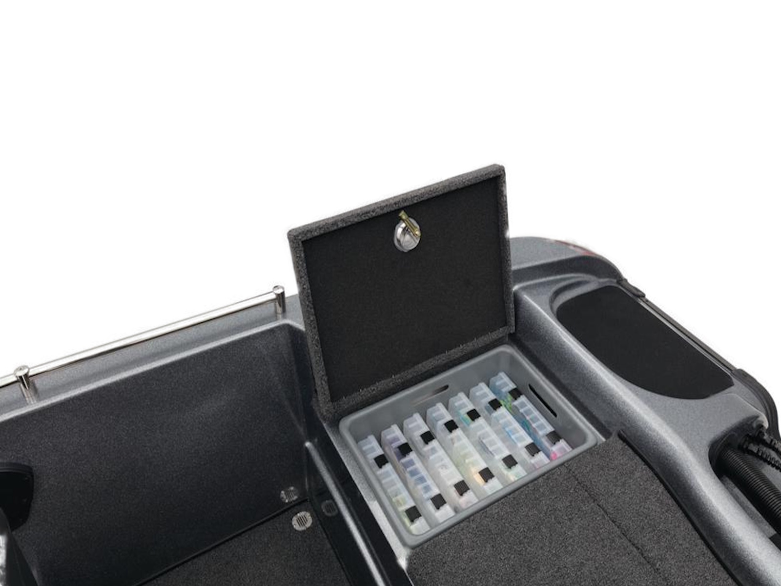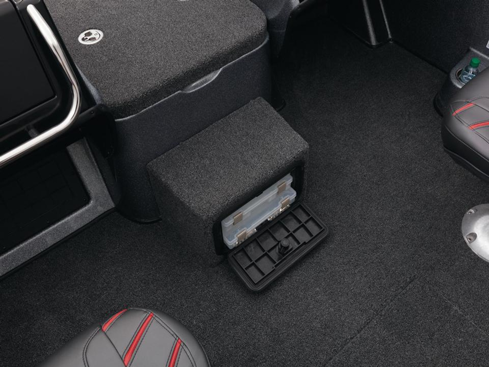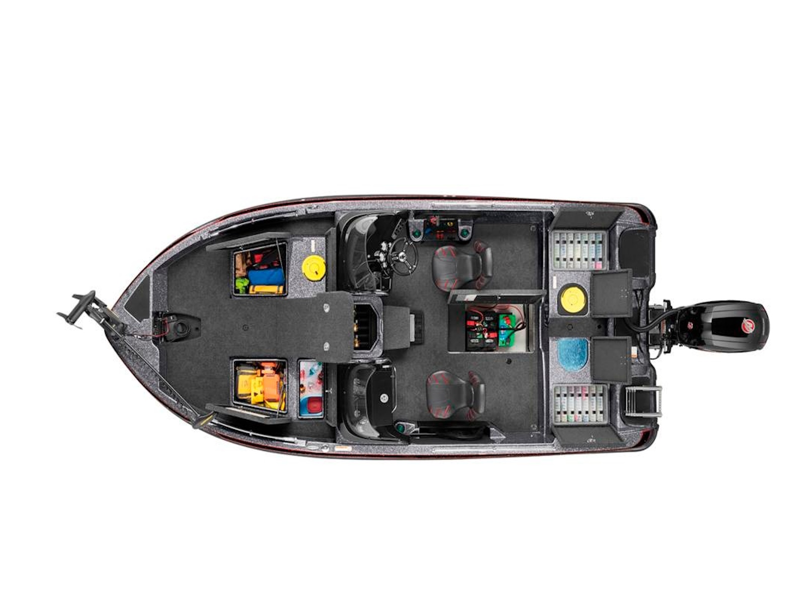 - 2 lift-out, molded & lockable aft storage boxes that will each accept seven 3700 tackle trays