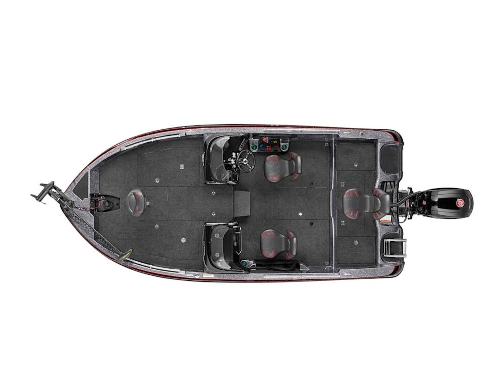 - Bow panel w/trolling motor receptacle, navigation light, anchor light & trim switches