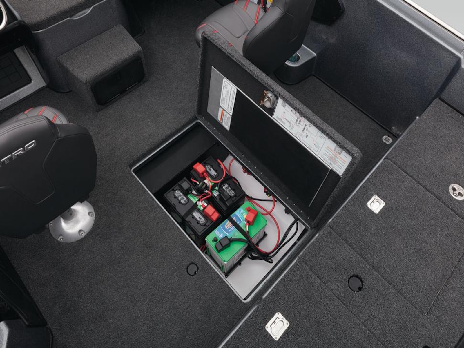 - Midship in-floor storage for 5 batteries